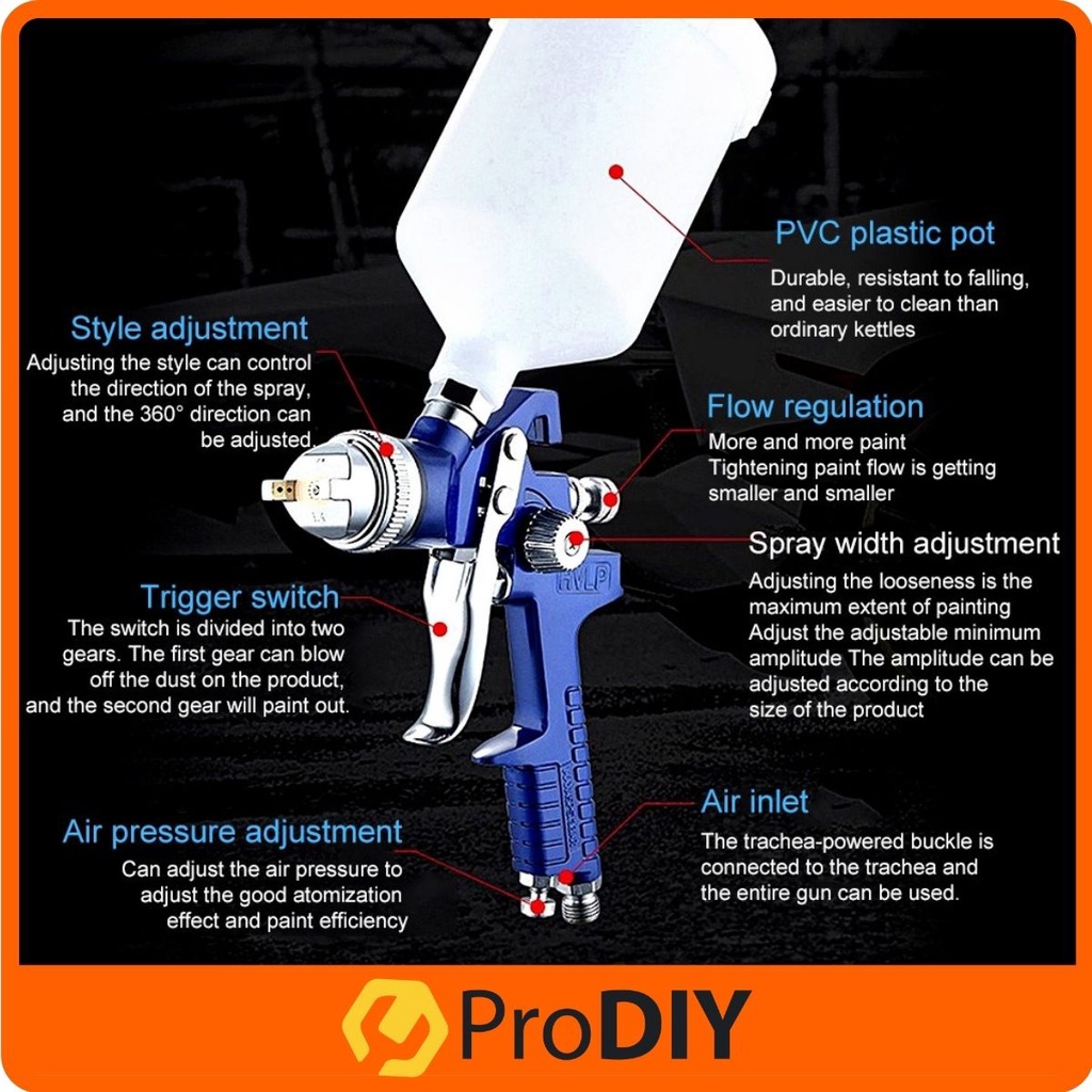 GS-OPTIMUS H-827 Spray Gun Container Professional HVLP Air Painting Gun ( Aluminum / Plastic )