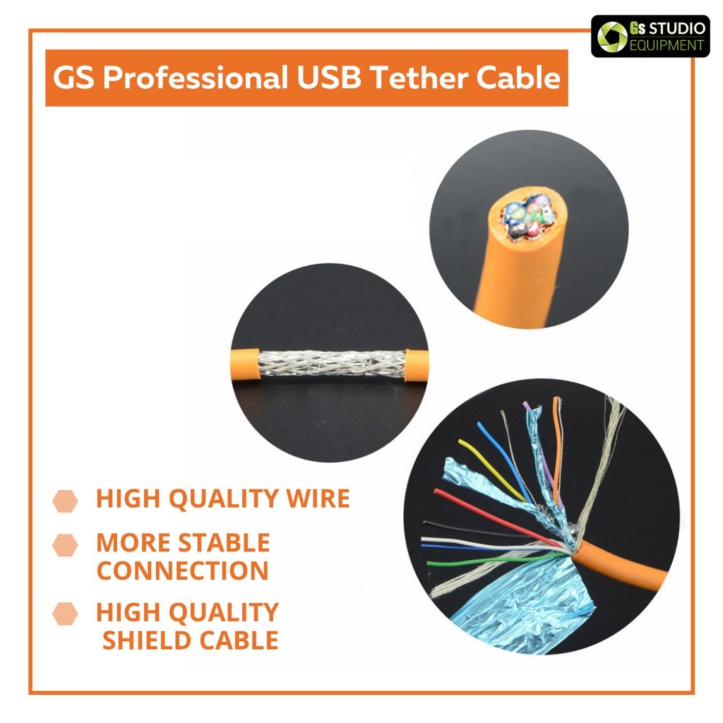 GS Professional USB Tether Cable To Connect Transfer Data To PC And Laptop For Canon/Nikon/Fuji/Sony/Leica (5M)