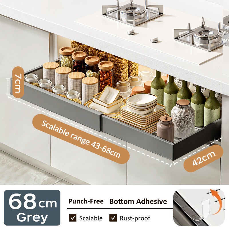 GSlife Extendable Black Cabinet Organizer Pull Out Rack Kitchen Pull Out Basket No Drill Holes
