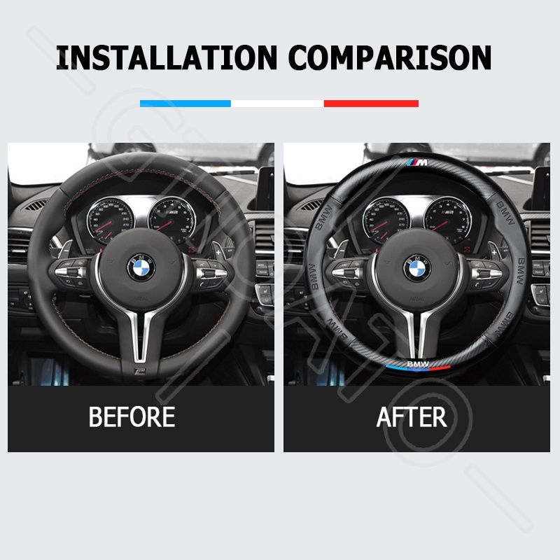 GTIOATO Car BMW M Carbon Fiber Leather Steering Wheel Cover Suitable For 38CM Anti-Slip Steering Wheel Protective Cover For BMW F30 E46 F10 E90 G20 E36 E39 E30 G30 E92 F20 X6 X1 X5 Z4 M3 X3 X4 5 7 Series 320I 218I 520I 530I 528I M2 730LI 740LI