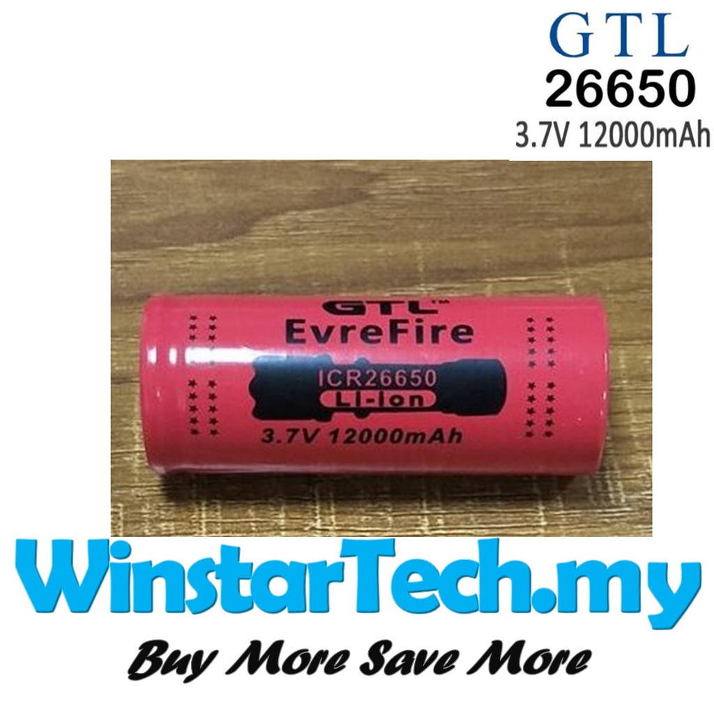 GTL EvreFire Ultrafire 100% New Original 26650 battery 3.7 v 12000mah 7800mah 26650 Lithium Rechargeable Battery