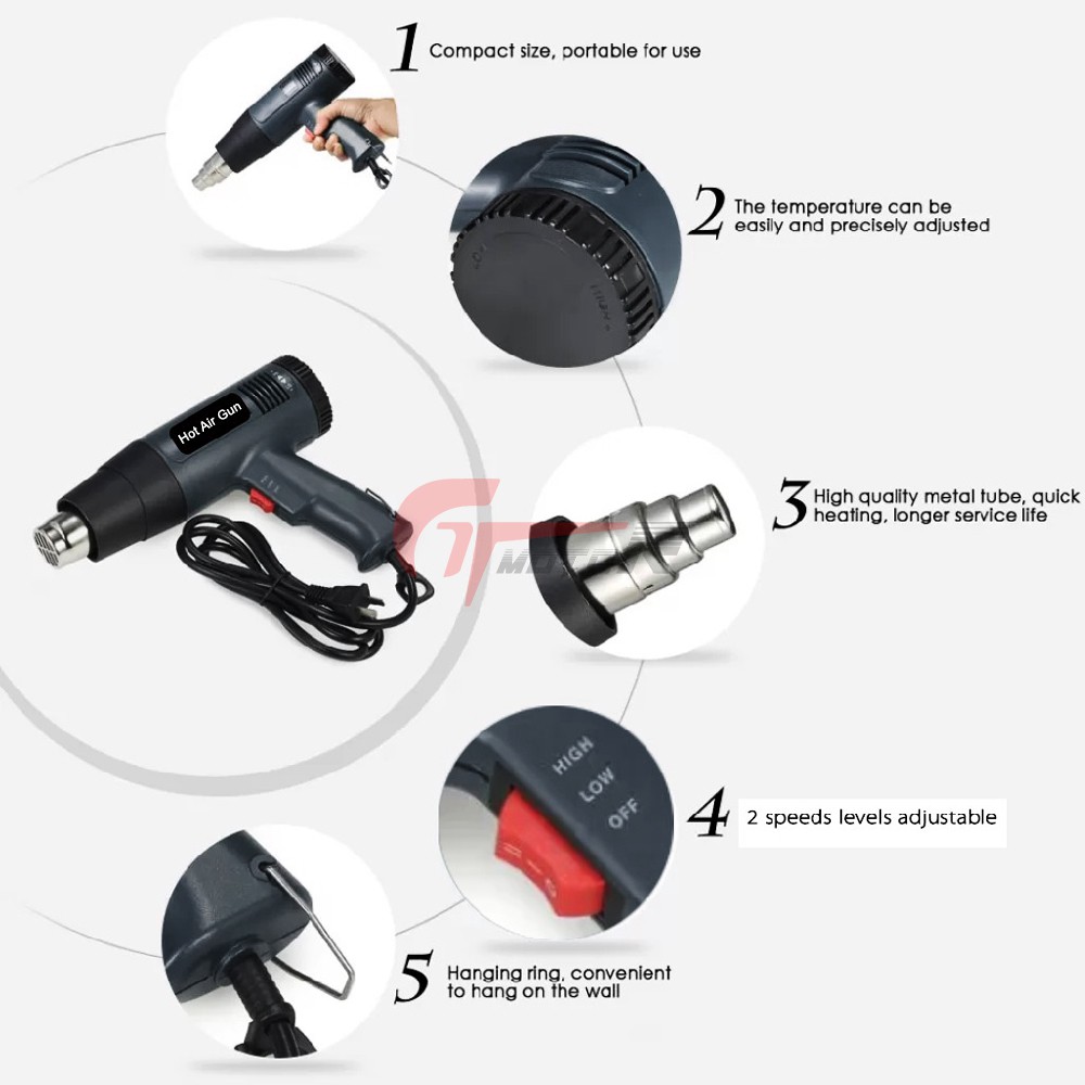 GTmotor Heavy Duty Heat Gun Digital Hot Air Gun Heat Gun Blower Temperature-controlled Heat Gun With 1pc Nozzle