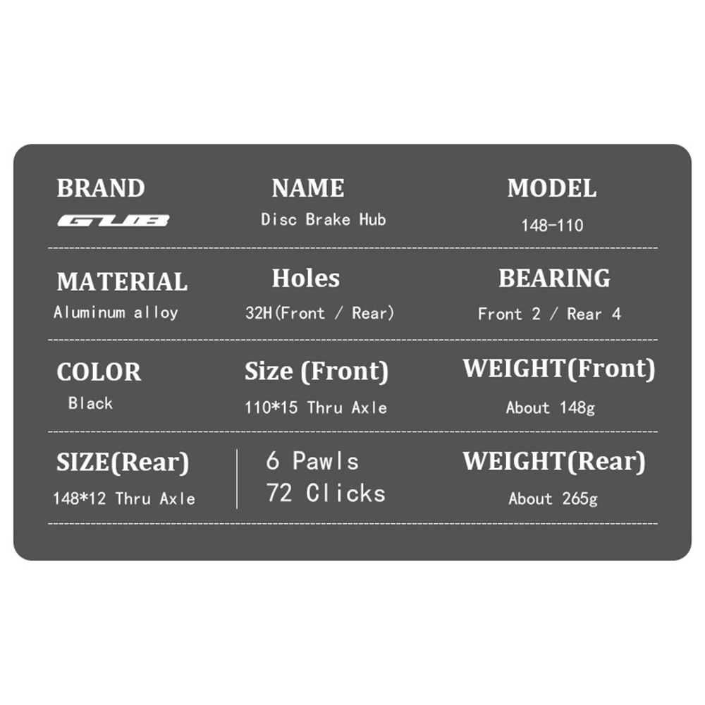 GUB 1351 BOOST MTB Bike Thru Axle hub 32 Holes 6 Pawls 72 Clicks Disc Brake Bike Hub 15*110mm / 12*148mm