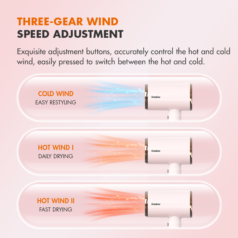 Gaabor 1000W Hair Dryer Low Noise Triple Speed Adjustment Blue Light Hair Care N1000D