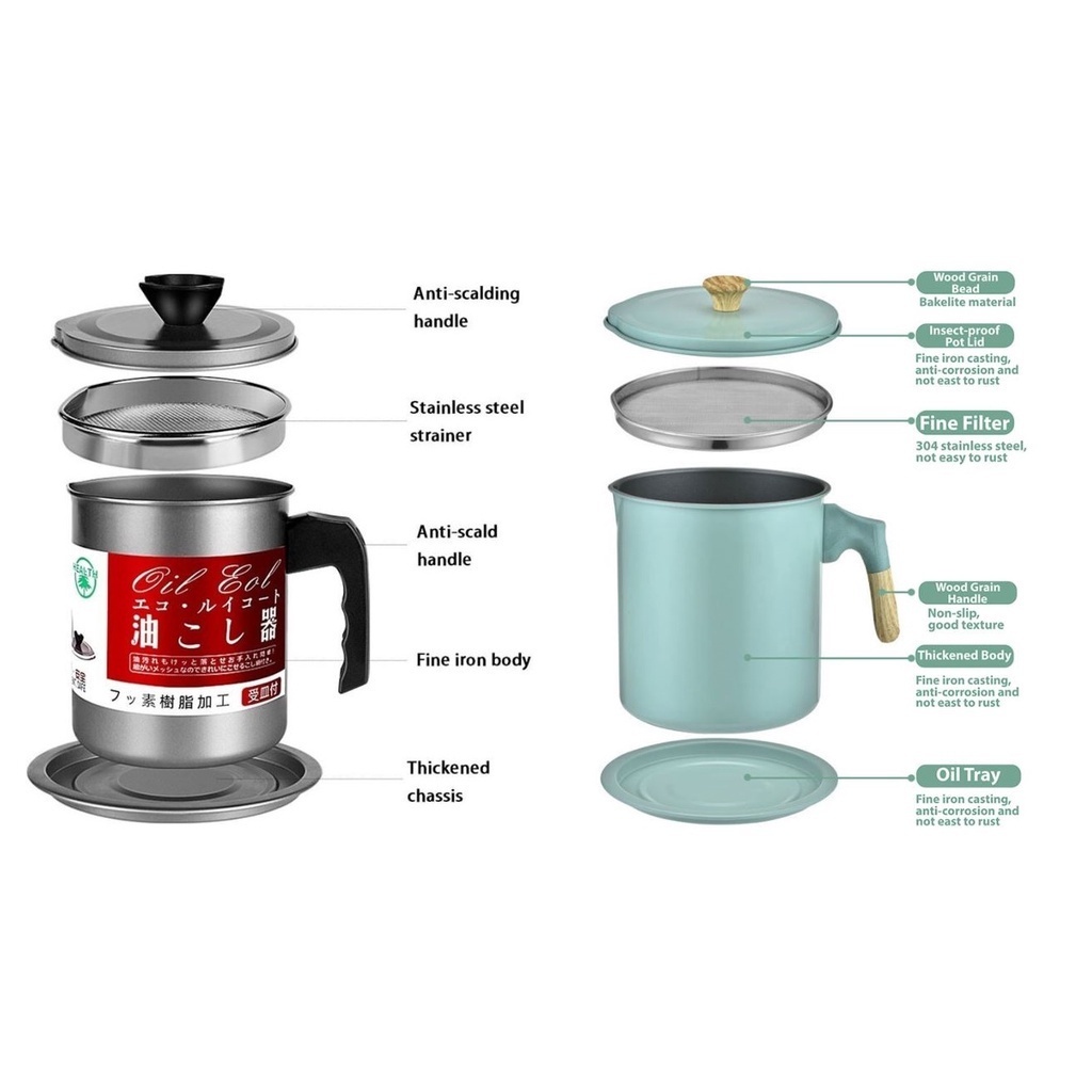 DESSINO Oil Cup Oil Filter Pot Oil Storage Stainless With Strainer Filter Steel Bekas Minyak Dengan Penapis