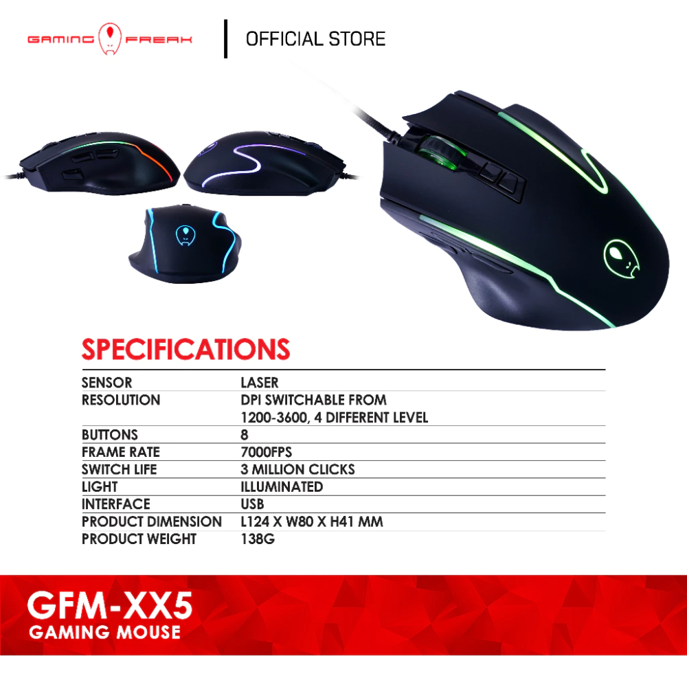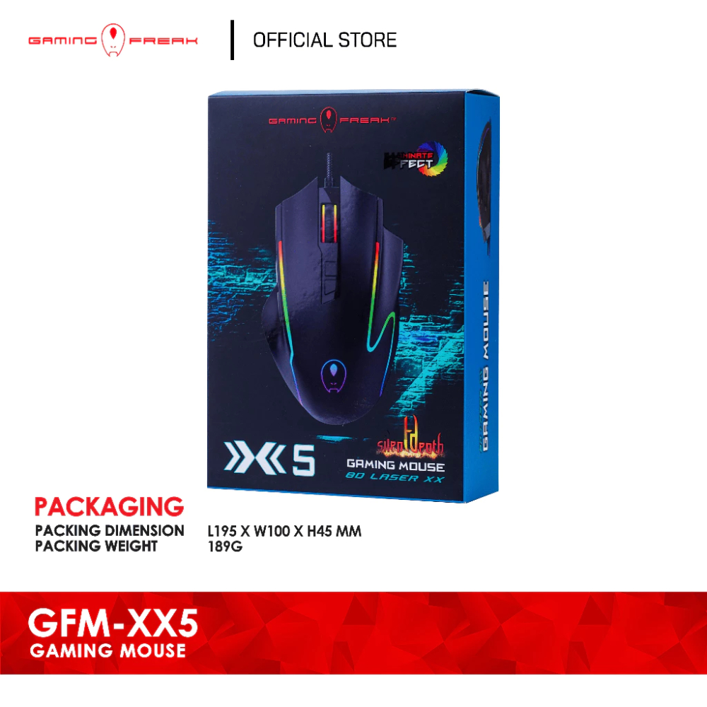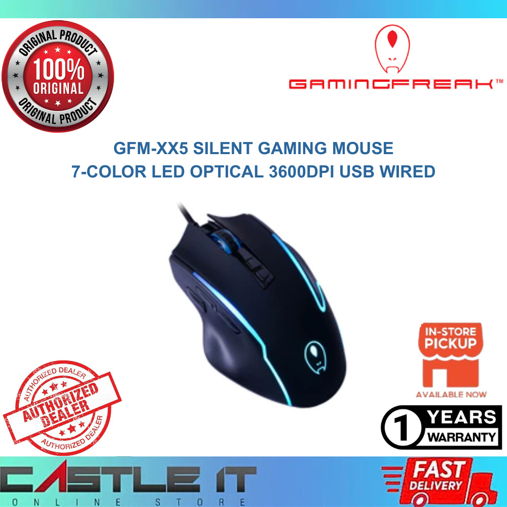 Gaming Freak GFM-XX5 Silent Gaming Mouse 7-Color LED Optical 3600DPI USB Wired AVF