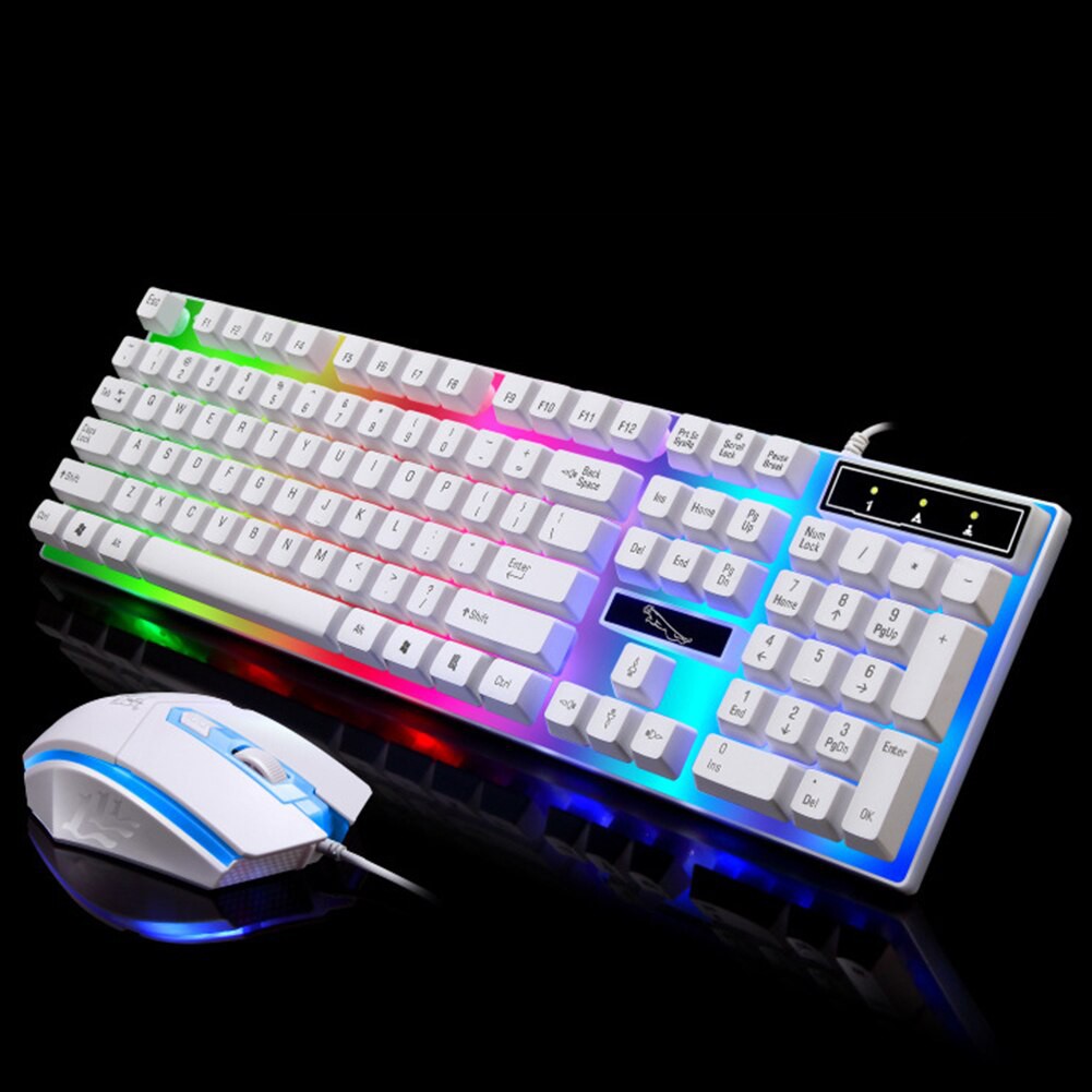 Gaming Keyboard Mouse Computer G21 Rainbow Color LED Light USB Wired Keyboard Mouse For PC Computer Desktop Laptop PS5
