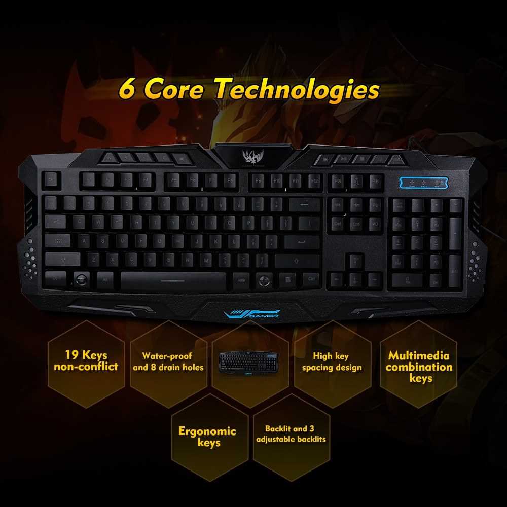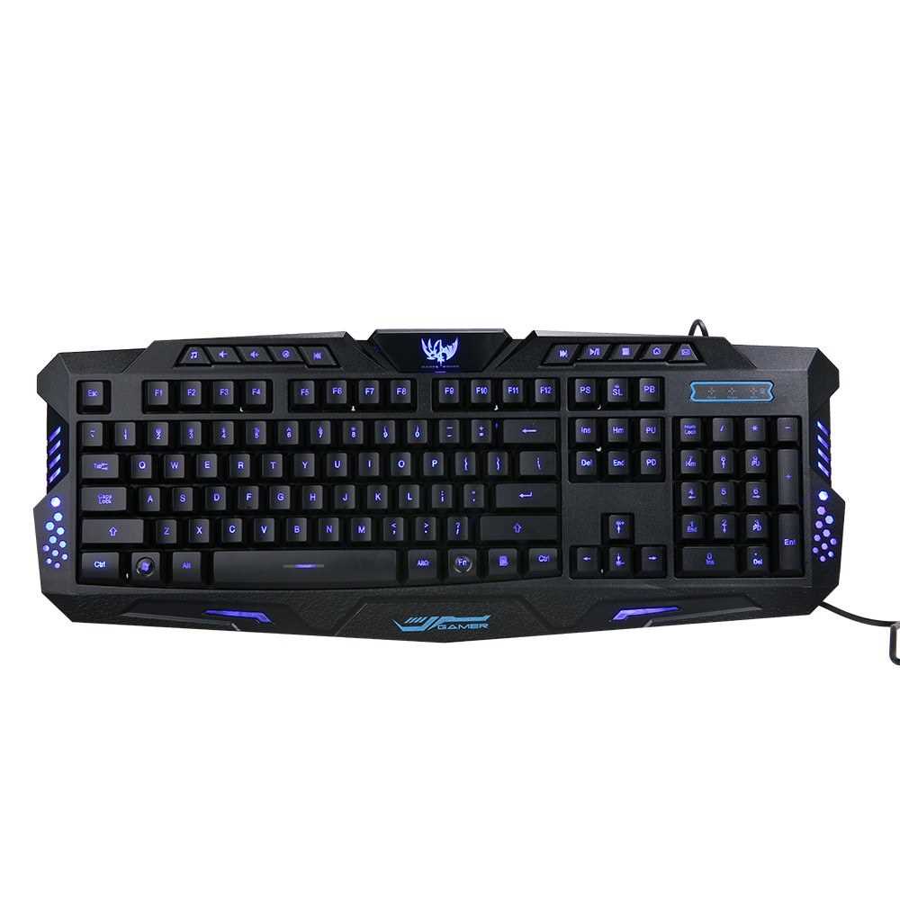 Gaming Keyboard Waterproof Characters Keyboard USB Wired 3-Level Backlit Keyboard Ergonomic Keyboard Switchable LX-K002