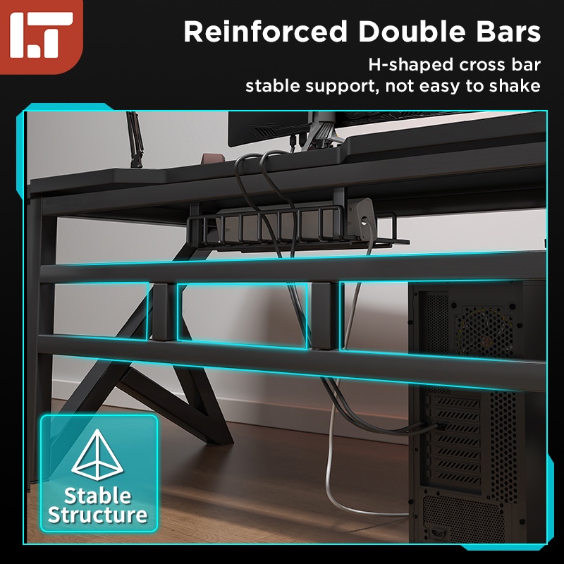 Gaming Table for E-Sport/Computer/PC/Study Meja gaming Carbon Matte Meja laptop with cable management tray & Headphone hook Home Office Table