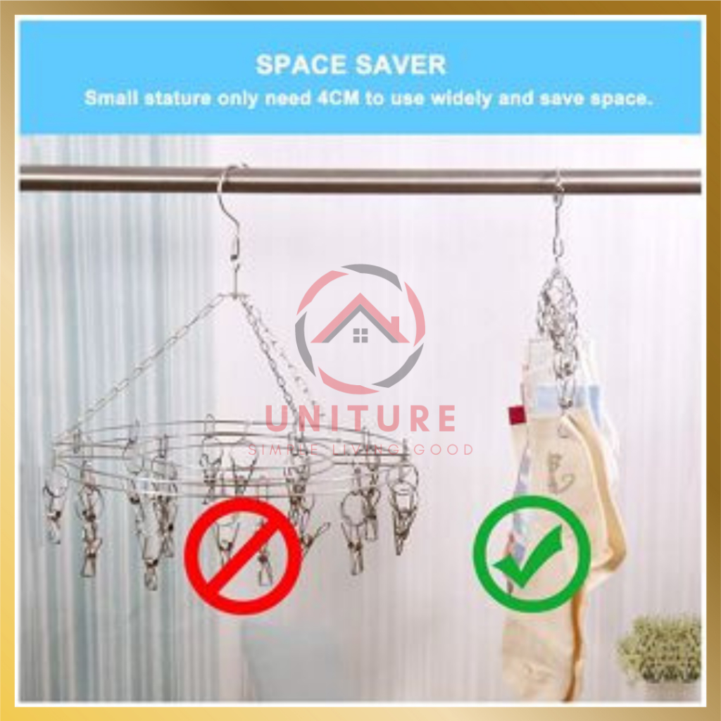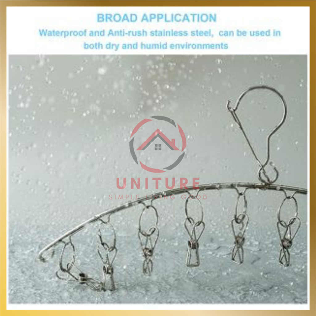 Gantungan Baju Stainless Steel Anti Angin dengan 10-20 Klip, cocok untuk menjemur baju, kain, dan kaus kaki.
