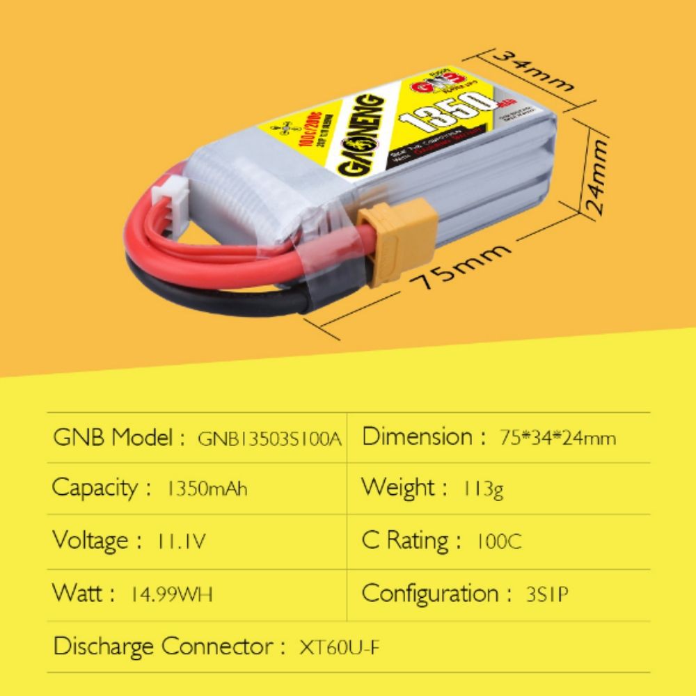 Gaoneng GNB 3s 11.1v 1350mah 100c 3s Lipo Battery with XT60 Plug