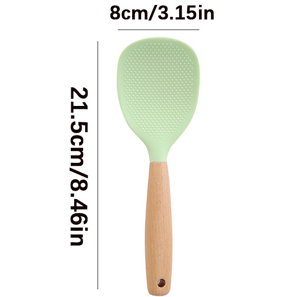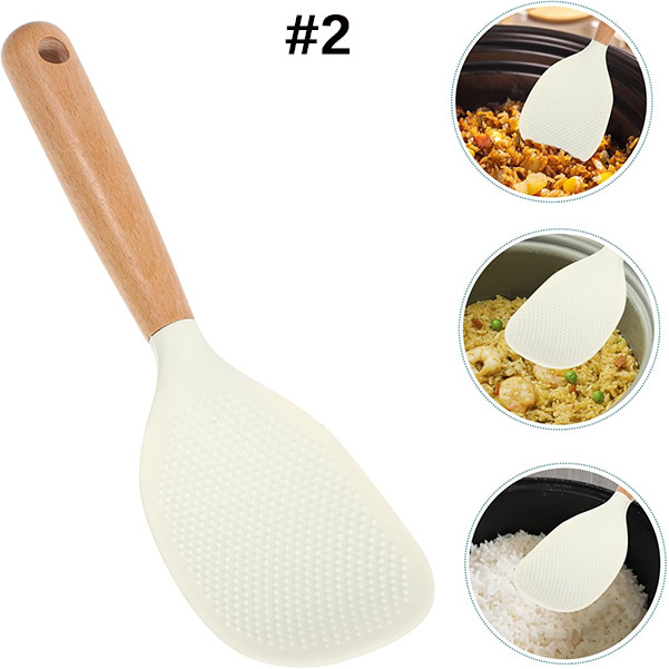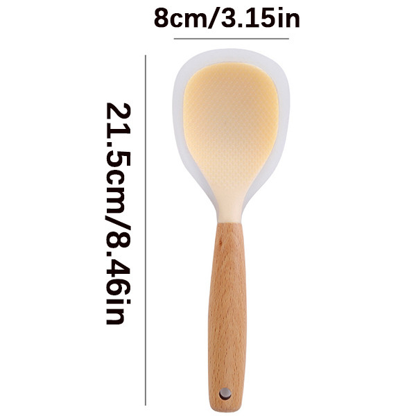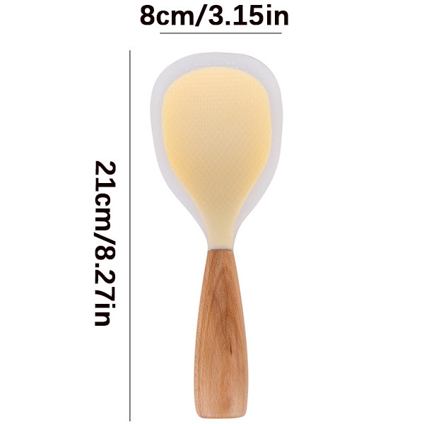 FEELING🚩High Temperature Resistant & Non-Stick Silicone Rice Spoon with Wooden Handle,Rice Spoon Spatulas Kitchen Accessories