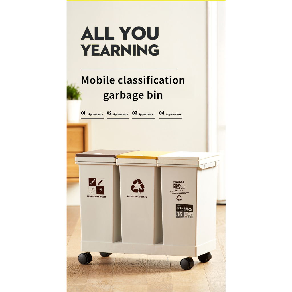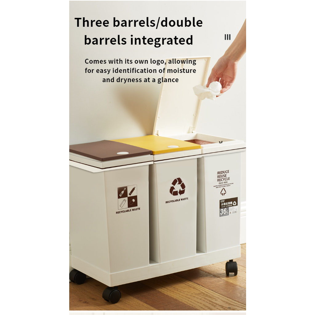 Garbage Sorting Bin Household Room with Lid Large Kitchen Dedicated Dry Wet Separation Trash Can