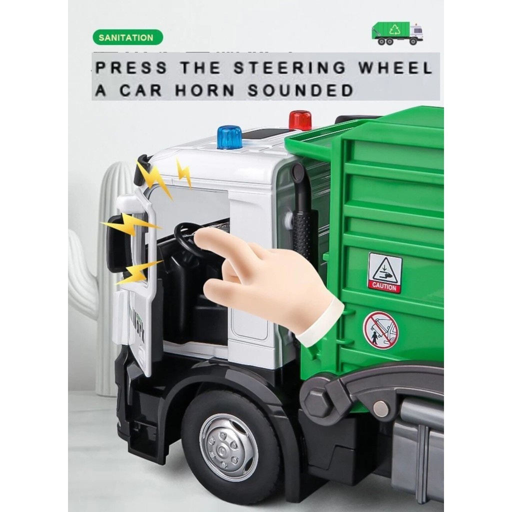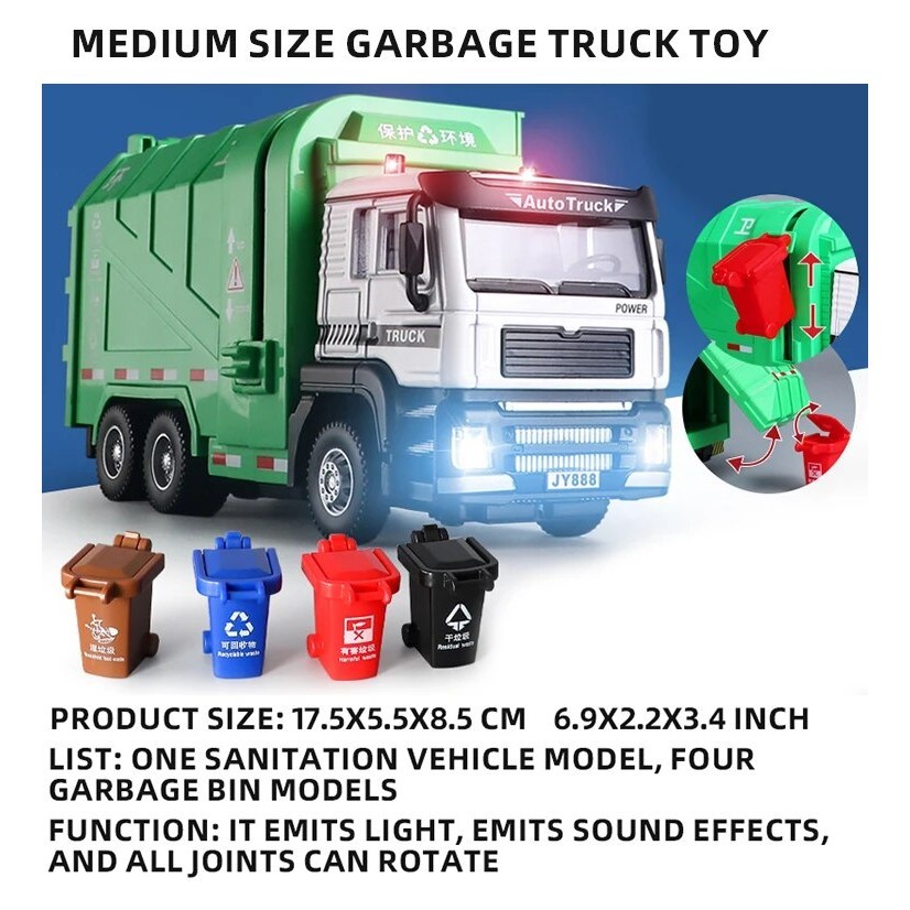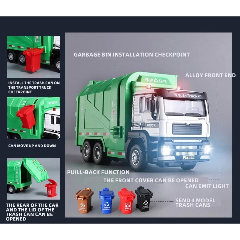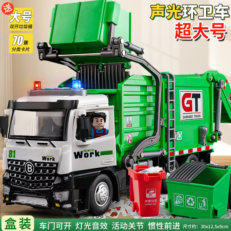 Garbage Truck Toys Metal Diecast Friction Powered Toy Large Alloy Garbage Truck Toy Transporter Size Children's Car Simulation Sorting Bin Boy Sanitation Vehicle Engineering