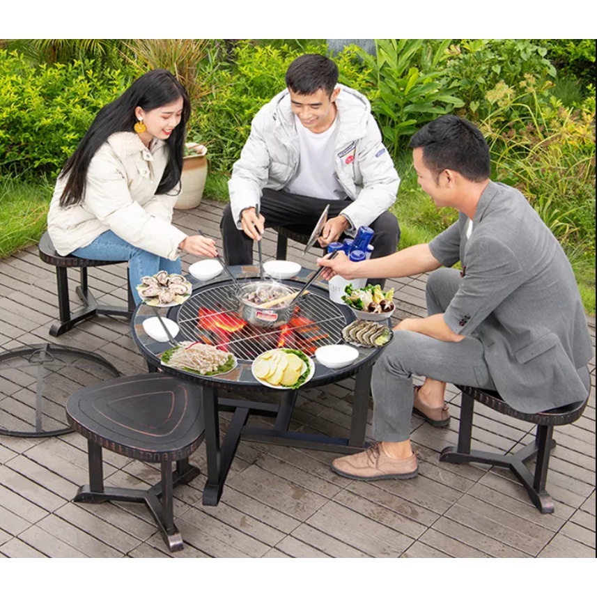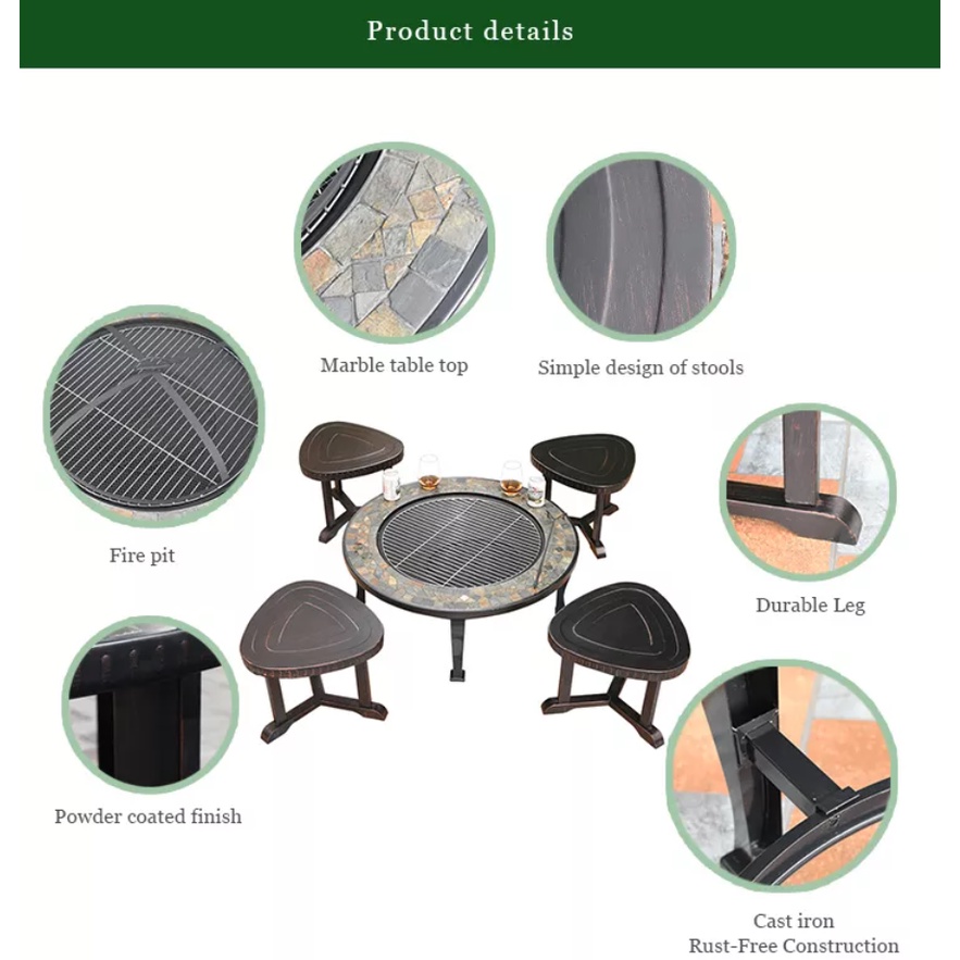 Garden Outdoor BBQ Table and Chair with Ceramic Tiles for Family Gathering/Birthday Celebration/Charcoal Grill
