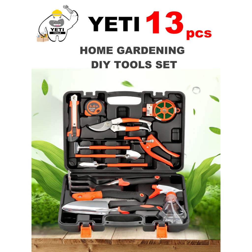 Garden Tools Set-13pcs StainlessSteel Garden Tools with Storage Organizer Gardening Tools Alat Kebun