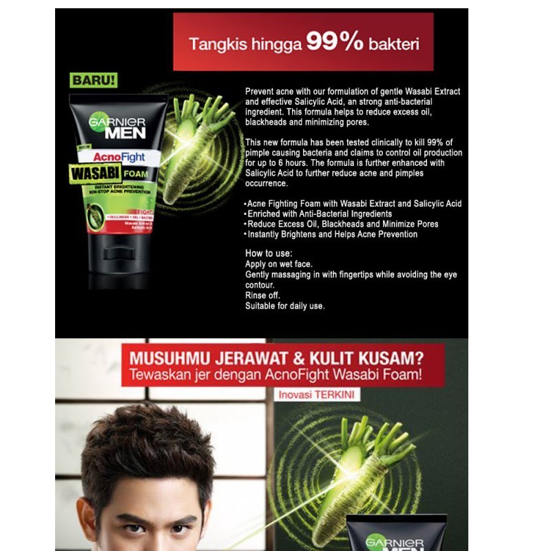 Garnier Men Acno Fight Anti-Acne Wasabi Brightening Face Wash (100ml)