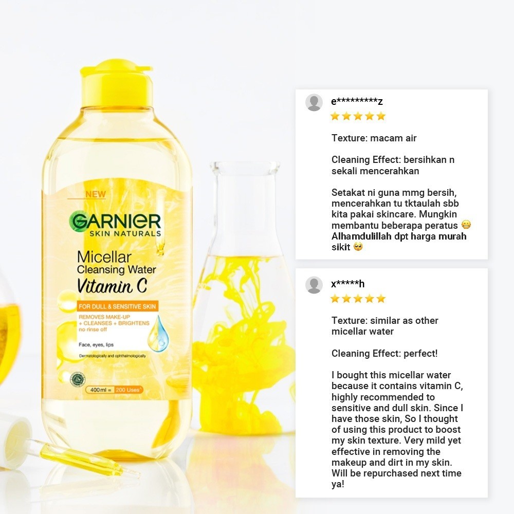 Garnier Micellar Cleansing Water Brightening Vitamin C Single (400ml) - For Dull and Sensitive Skin