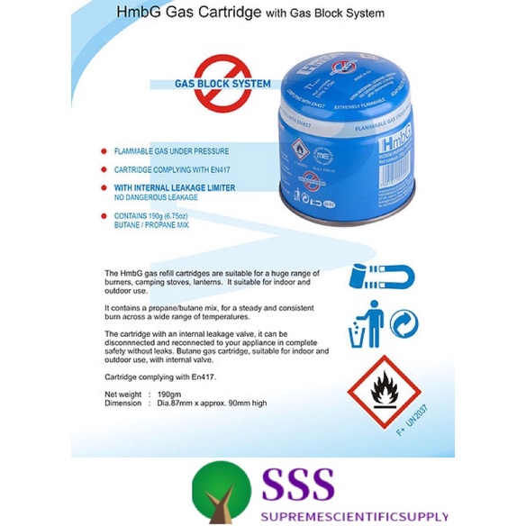 Gas Cartridge gas refill for Bunsen Burner | Kartrij Gas Penunu Bunsen(HmbG/CAMPINGAZ/INTERNATIONAL)
