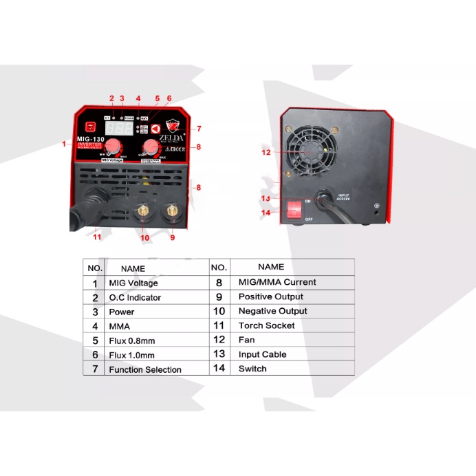 Gasless MIG-130 MMA ARC IGBT Welding Inverter Machine Free 1 Flux Cored Welding Wire (1kg/1.0mm)