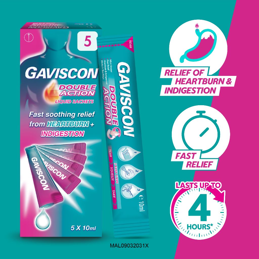 Gaviscon Double Action Liquid Sachet 10ml/10ml x5/10ml x15/10ml x30 (Fast soothing relief from heartburn & indigestion)