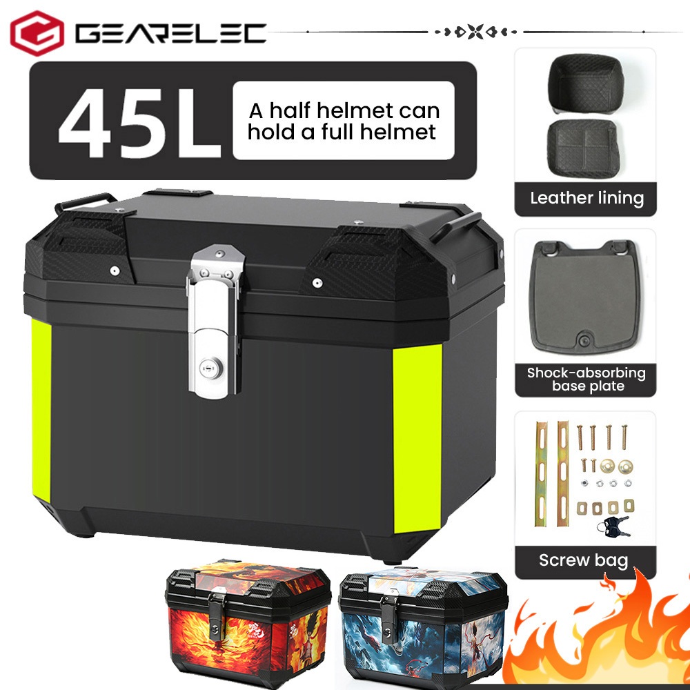 Gearelec Universal Motorcycle Top Box 45L Aluminum Locking Motorcycle Trunk Motorcycle Accessories