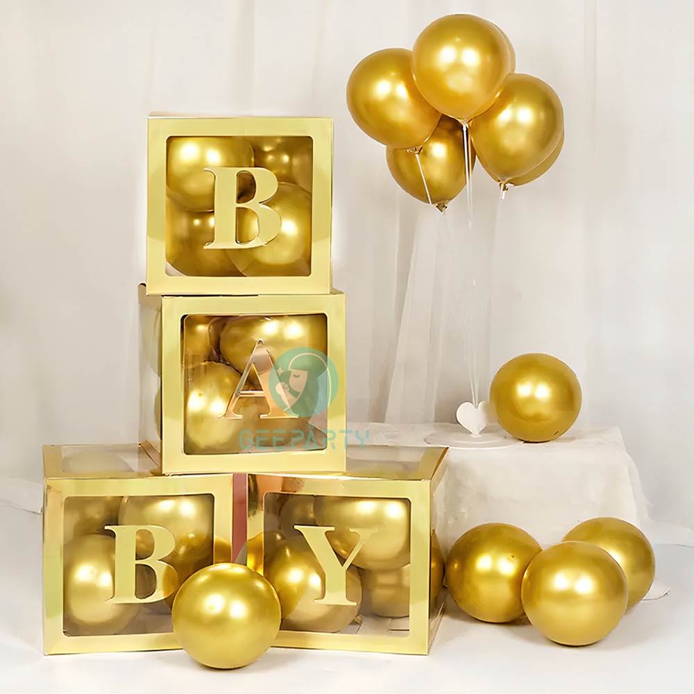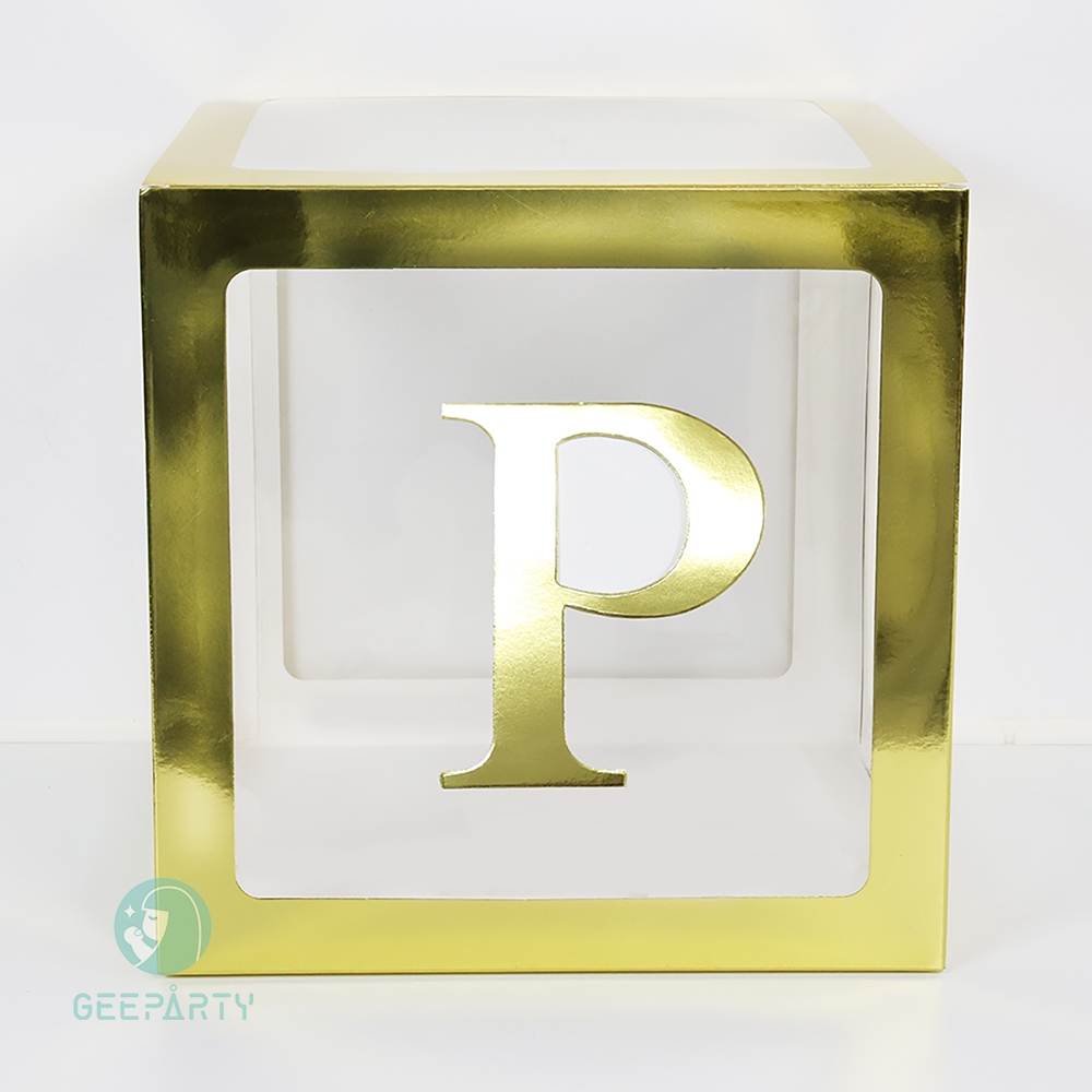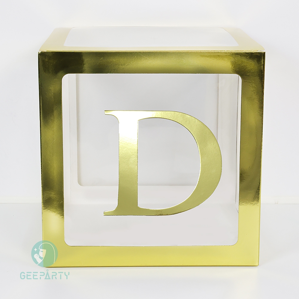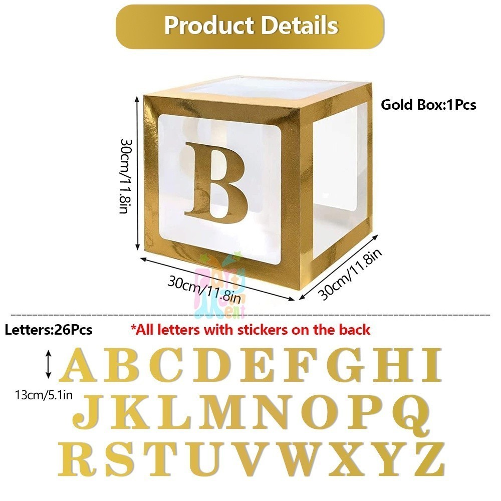 GeeParty 30*30cm DIY A-Z Gold Transparent Balloon Box Customize Name Sticker Letter for Birthday Party Decorations Wedding Anniversary Baby Shower Decor