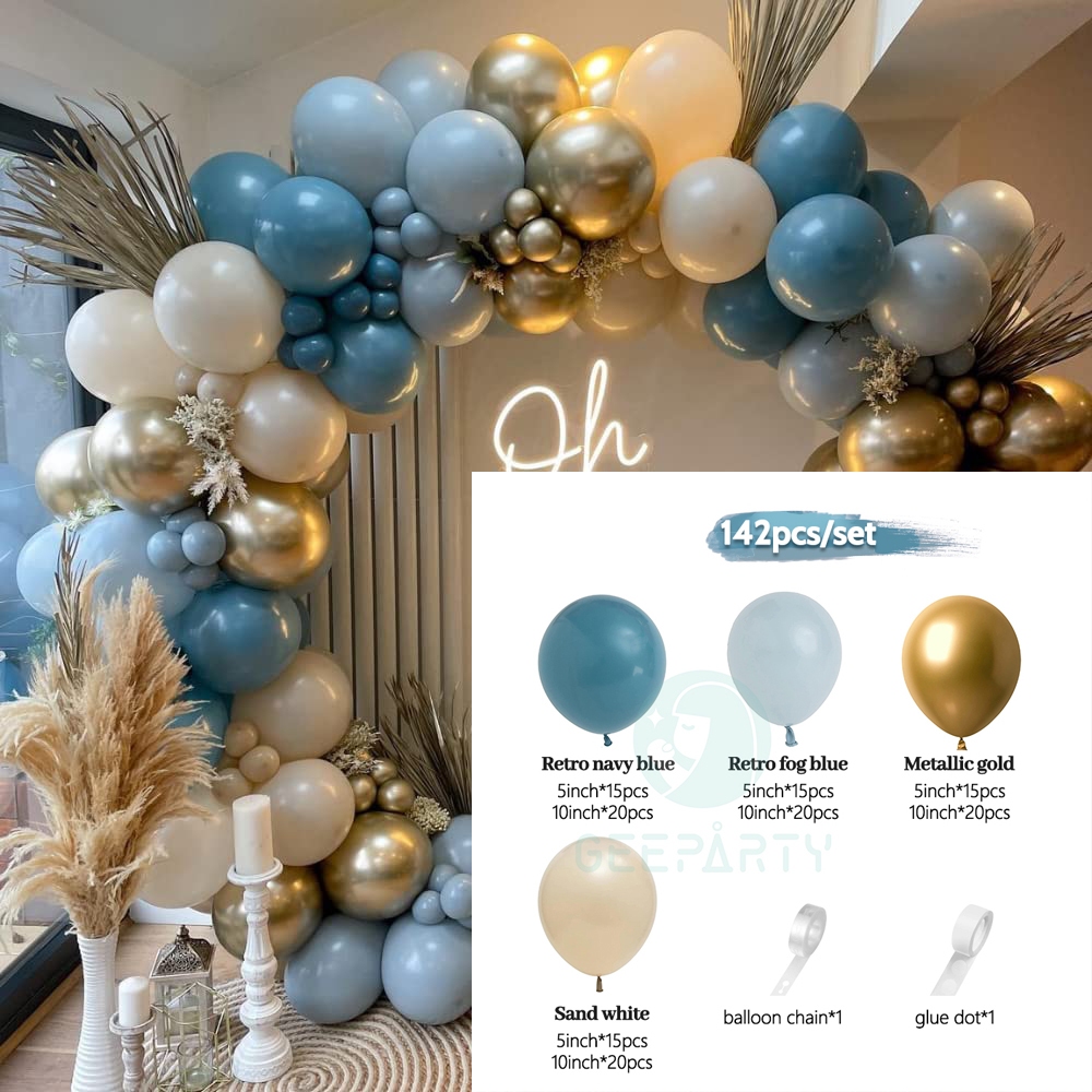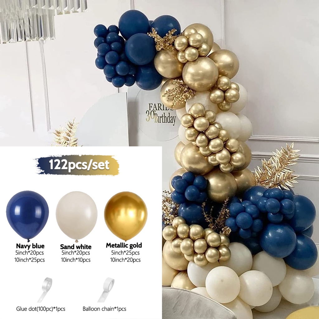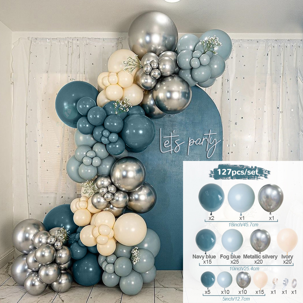 GeeParty Blue Series Balloon Garland Confetti Chorme Metallic Balloon Arch Garland Balloon Birthday Party Valentine Wedding Graduation Party