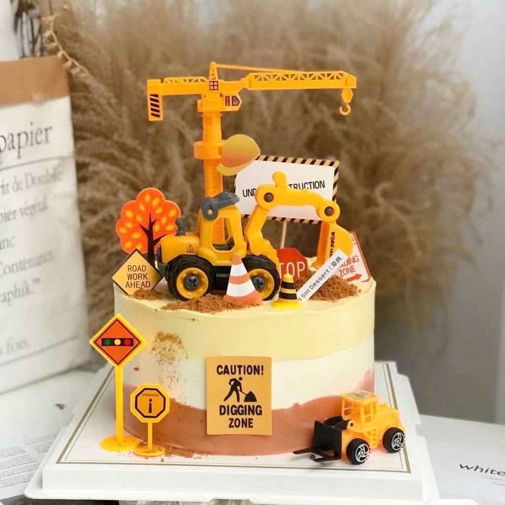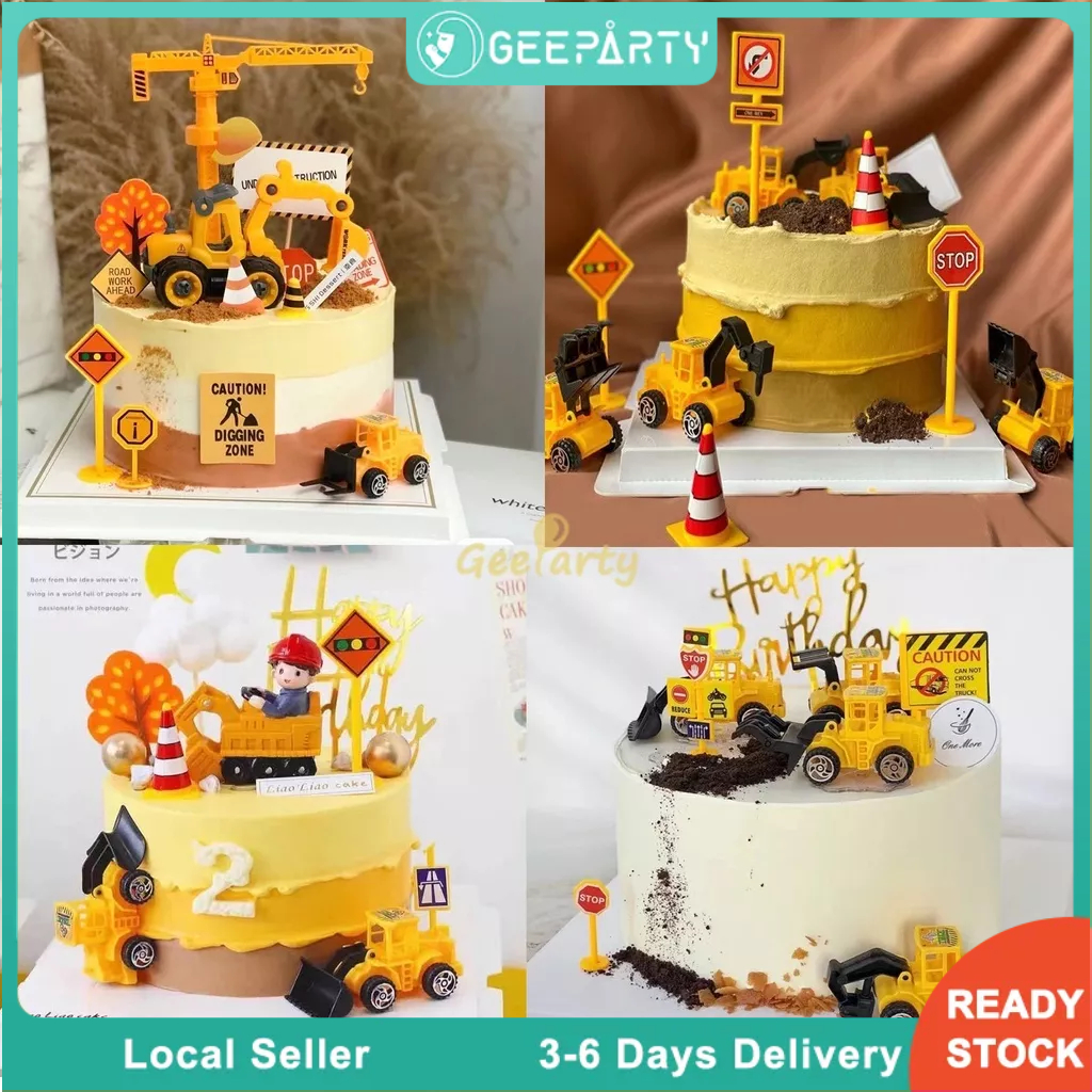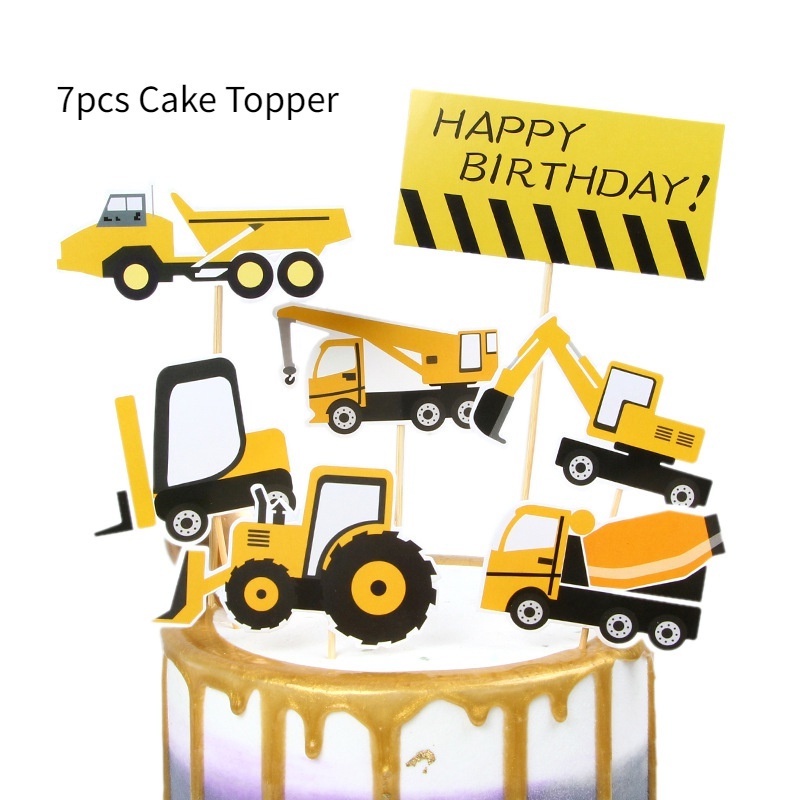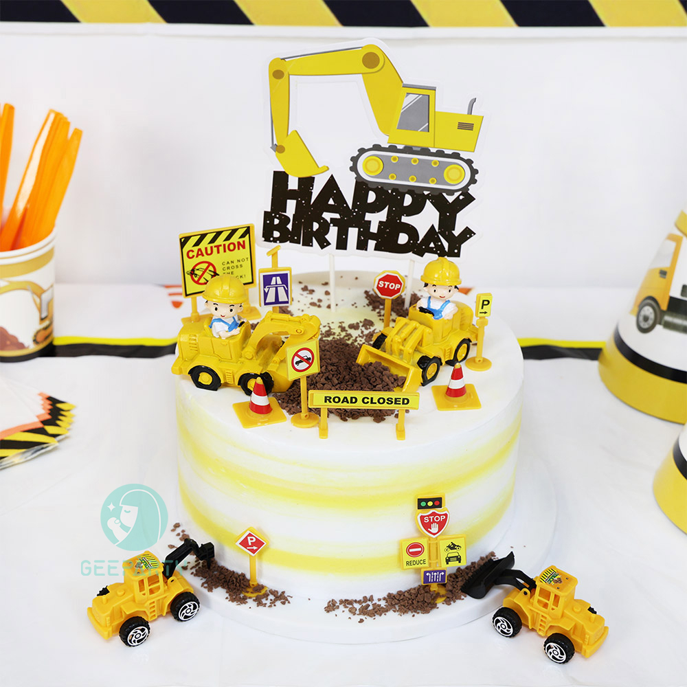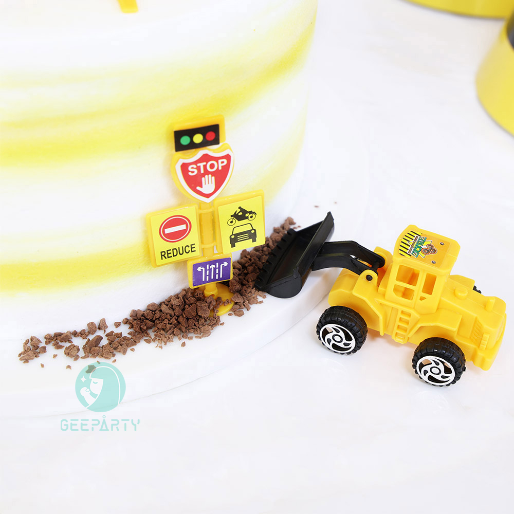 GeeParty Excavator Bulldozer Shape Cake Topper Construction Theme Party Cake Decoration Boys Birthday Party Decoration