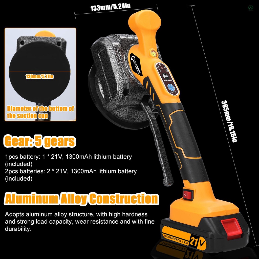 Geevorks 21V Automatic Tile Tiling Machine High Loading Capacity Wall Floor Tiles Laying Vibrating Tool Handheld Tile Leveller Enlarged Suction Cup with Bubble Leveler Home Decorat