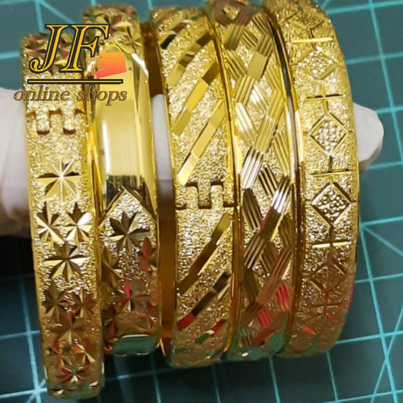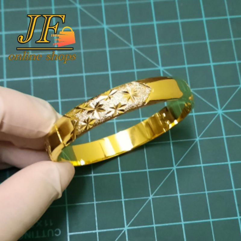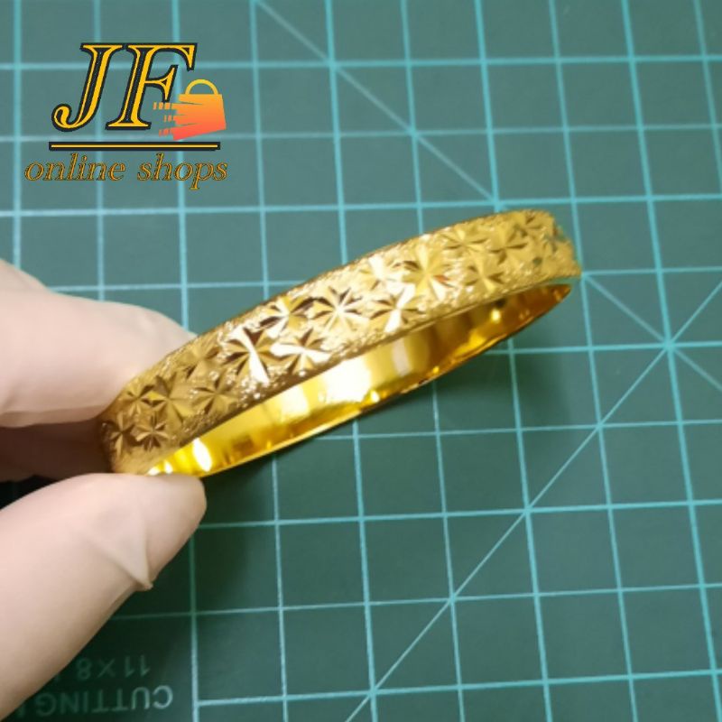 Gelang Tembaga bercorak 24k gold color Material Tembaga tulen bersalut gold color