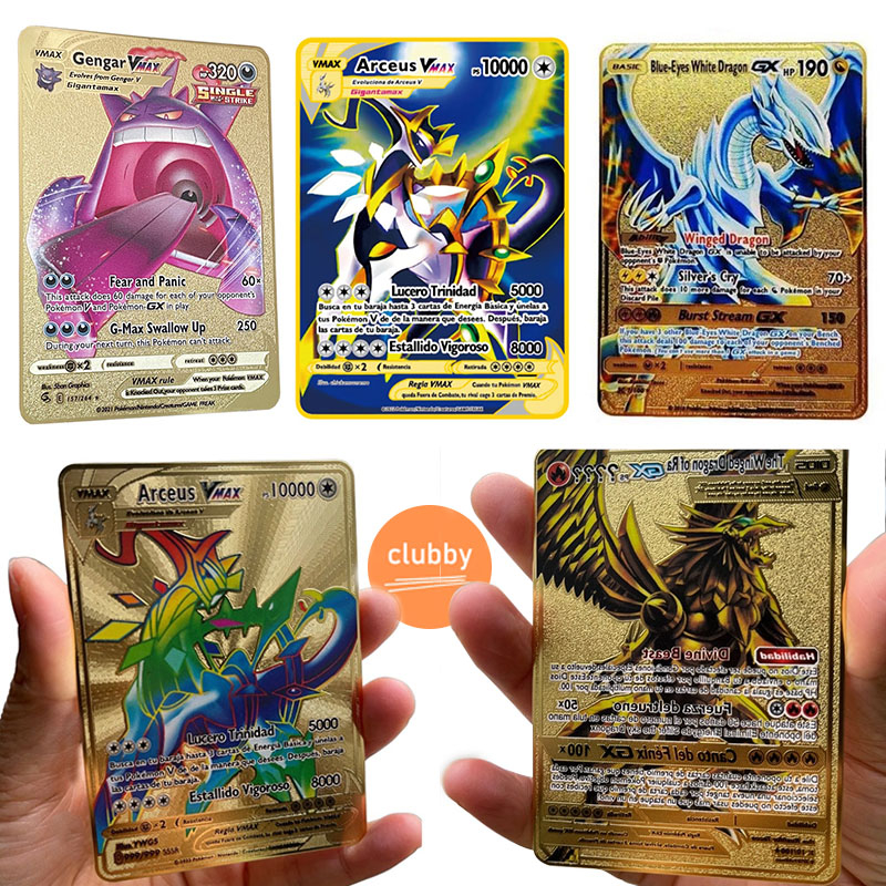 Gengar Cards Vmax Golden Pokemon Cards In English Iron Metal Pokmo Cards Kids Gift Game Collection Rainbow
