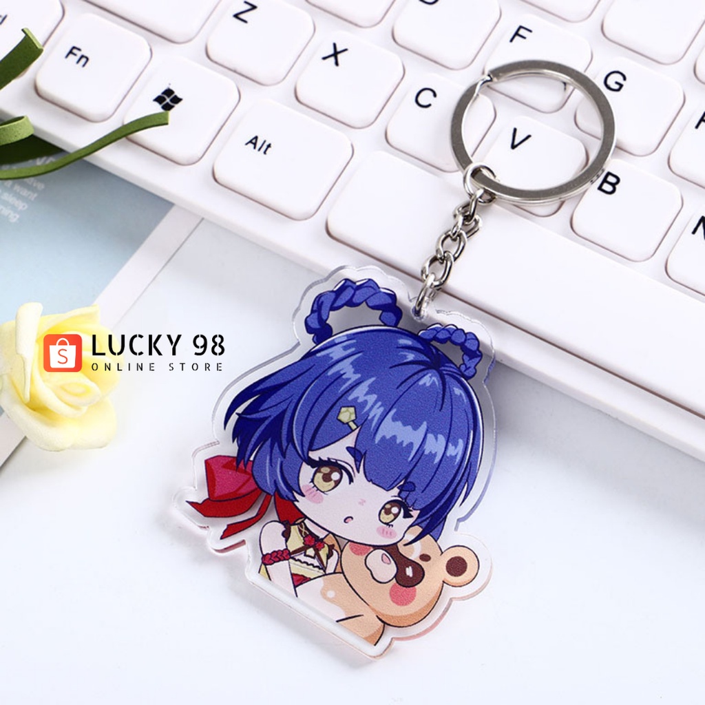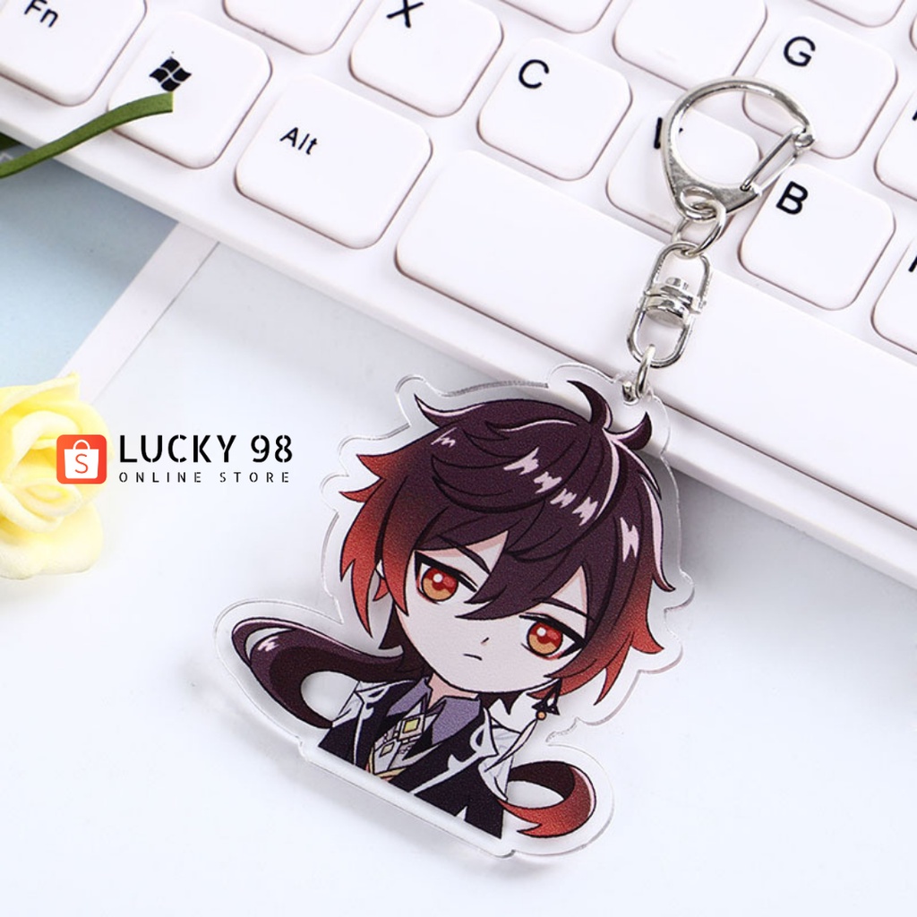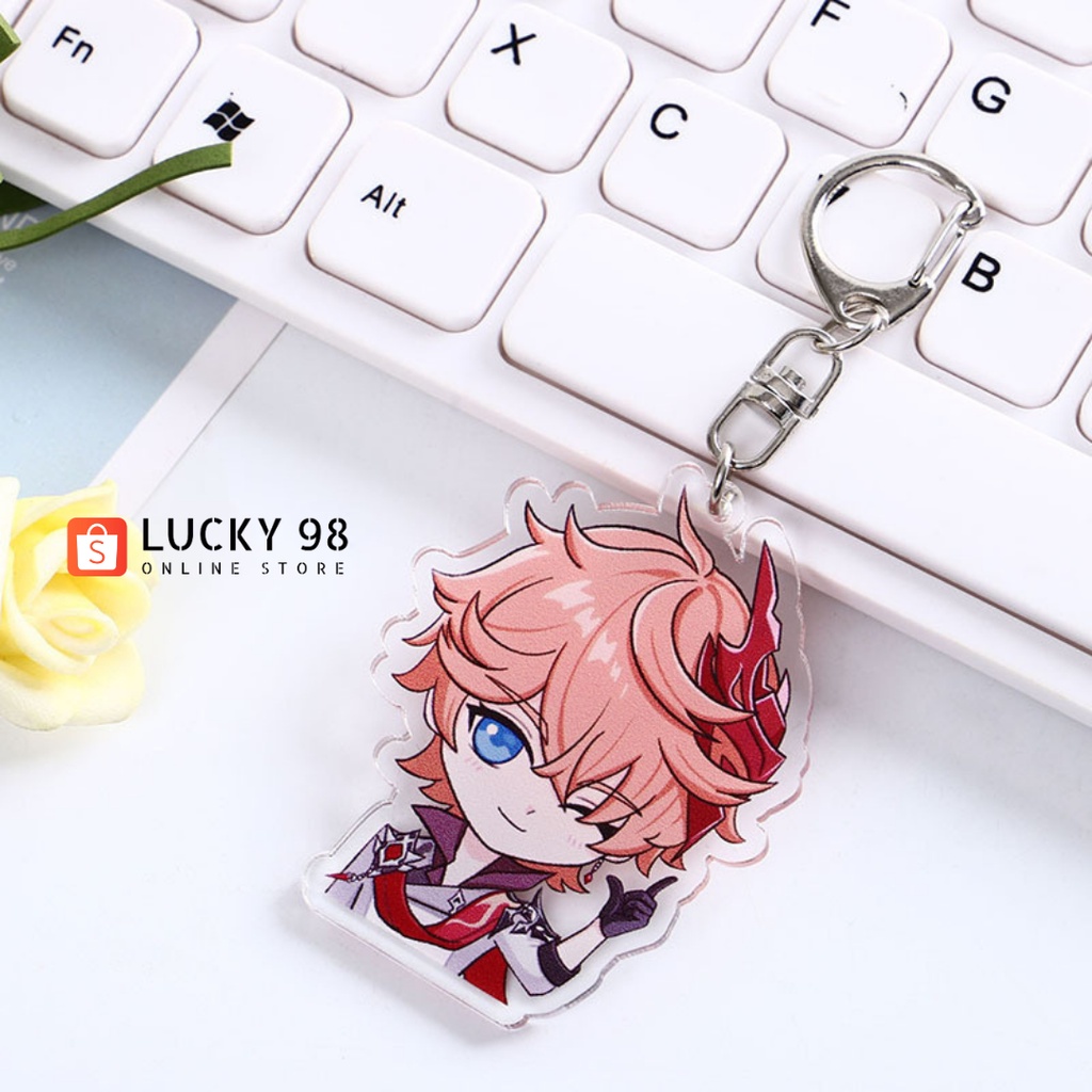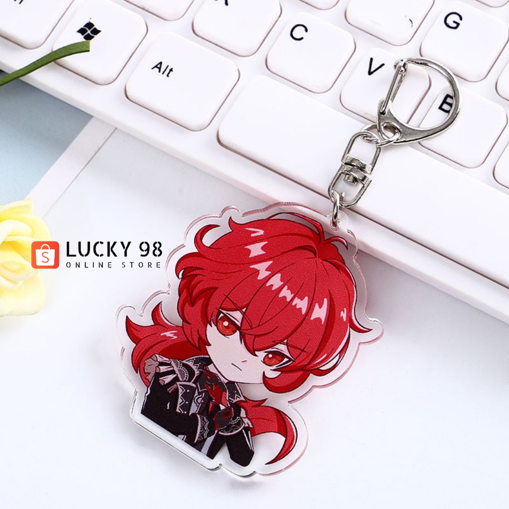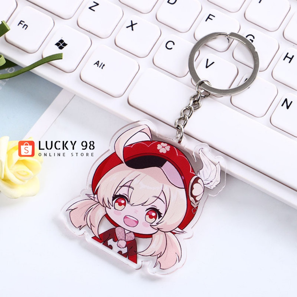 Genshin Impact Keychain Klee Venti Barbara Diluc Zhongli Tartaglia Qiqi Hand-made Acrylic Keychain Vision Double-sided