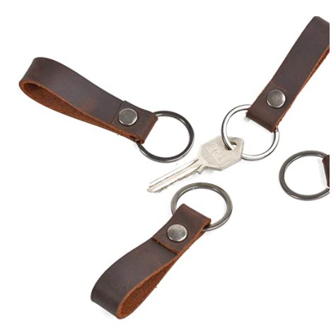 Genuine Cow Leather 7cm Keychain Fob Gift Key Chain Premium Handcraft Ring Vintage Strap Car Key Holder Add Name Custom