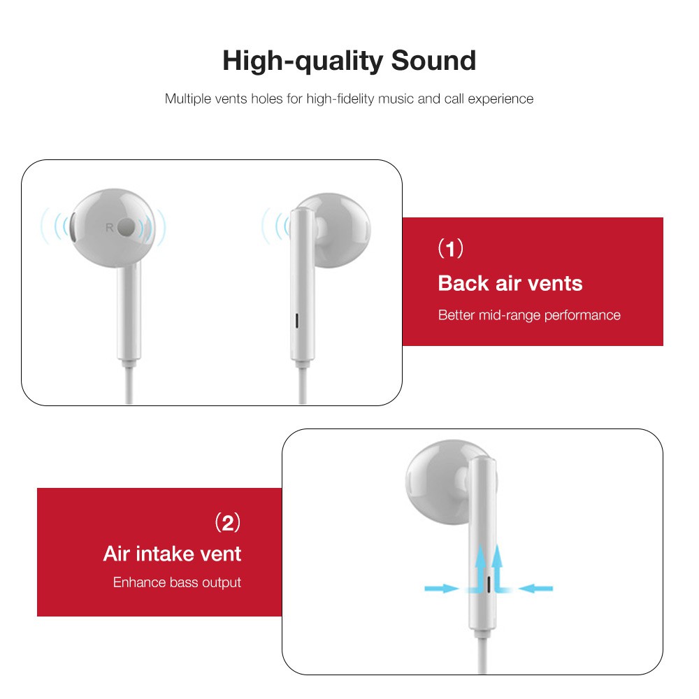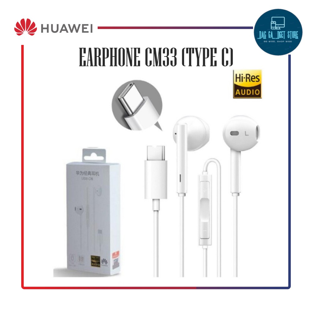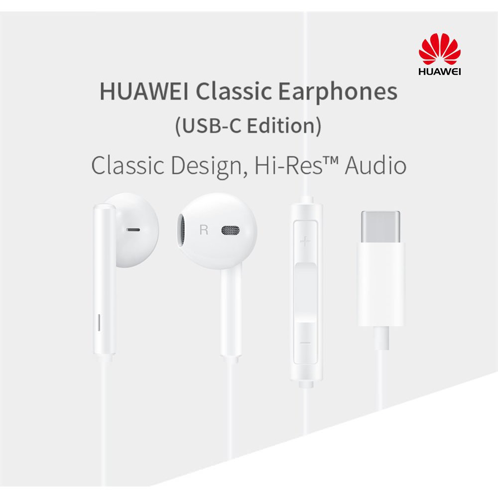 Genuine Huawei AM115 | AM116 | CM33 Type-C Headset Wire Control In-Ear Earphone Handsfree with Mic- WHITE