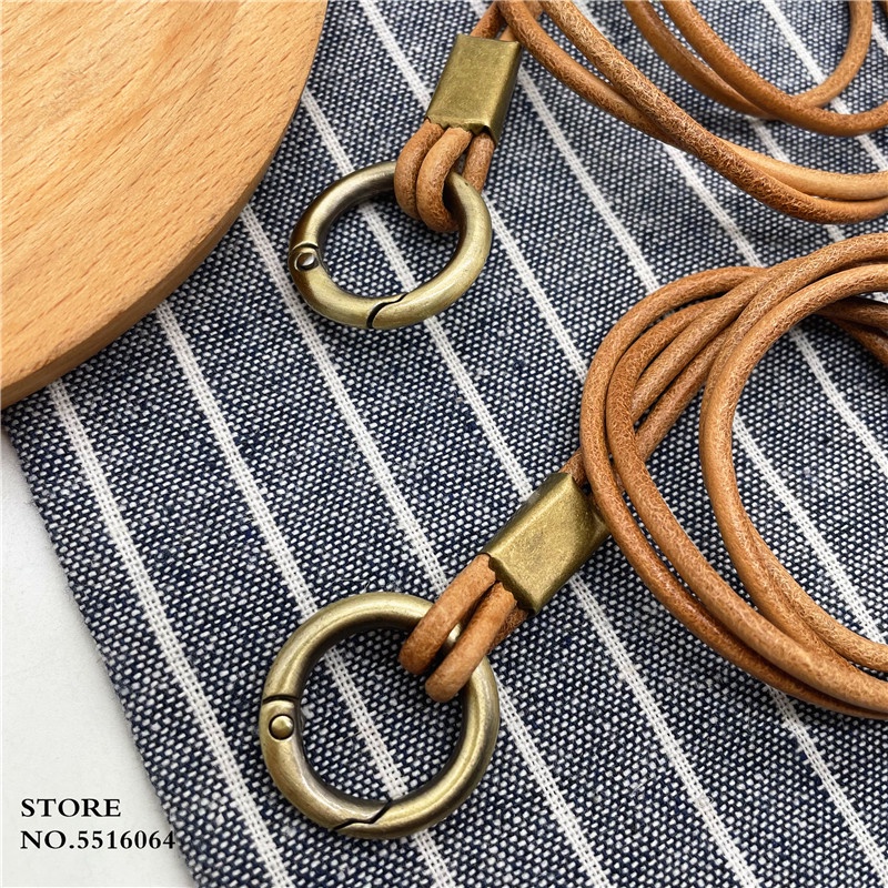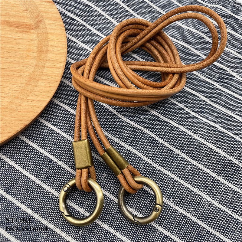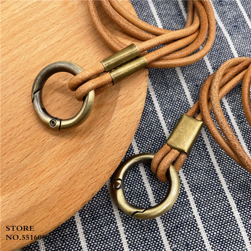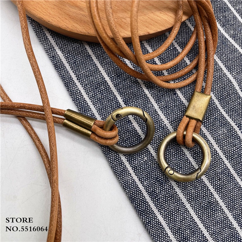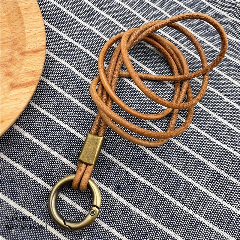 Genuine Leather Keychain Lanyard Neck Strap For Mobile Phone Charm Premiu Universal Bag Keys ID Credit Work Card Holder Neck Lanyard Cowhide Keychain Neckline Straps