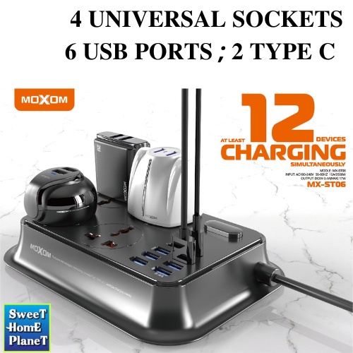 Genuine Moxom MX-ST06 2500w Home Travel Smart Extension Socket 4 Universal Sockets 6 USB 2 Type-C Power Socket