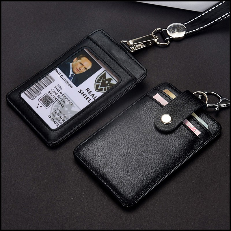 Genuine leather Business Work Card Holder Fashion ID Badge Holders with Nylon Lanyard ID case Office Supplies