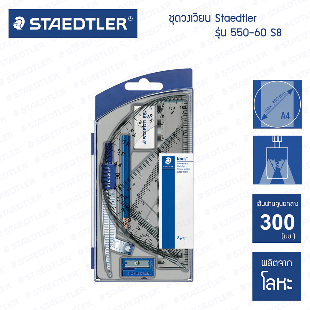 Geometric Set Staedtler Compass Model 550-60 S8 (8 Pieces With Box Pencil Sharpener Eraser Ruler Angle Wood) [S24]