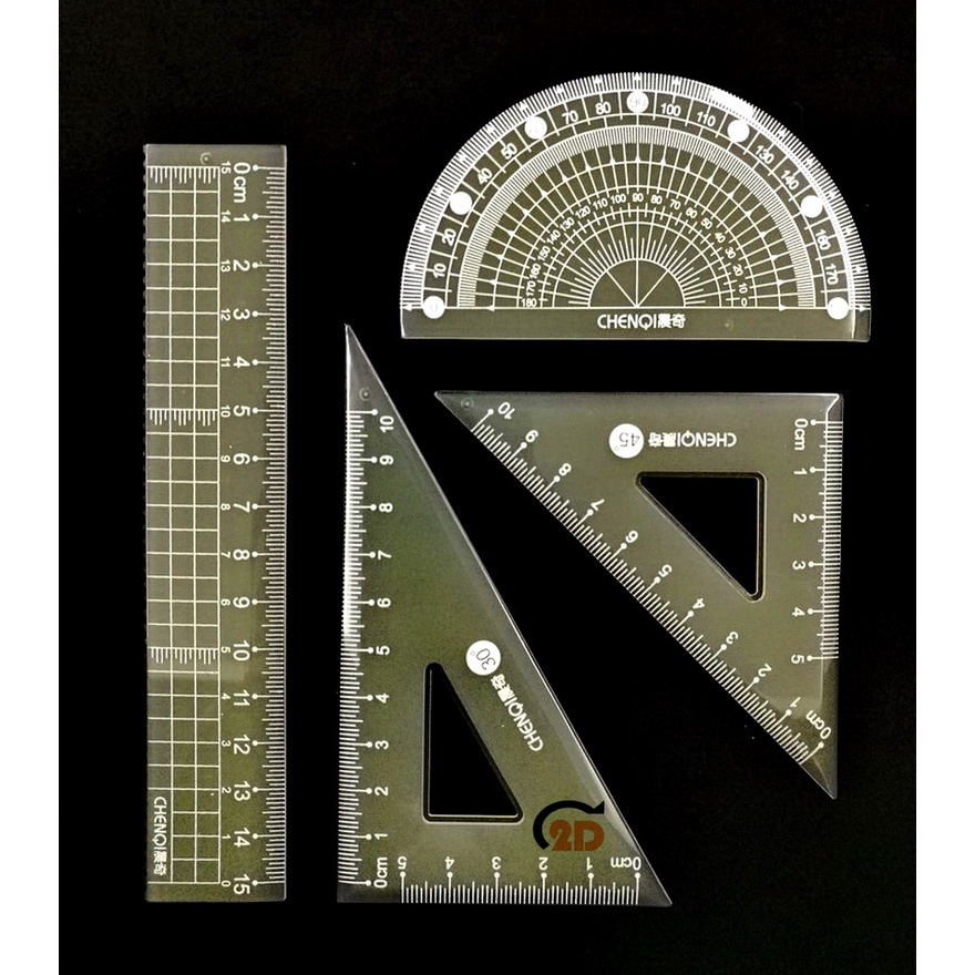 Geometry Ruler Set With Plastic Case 180' 60' 45' / 4 IN 1 (Set)
