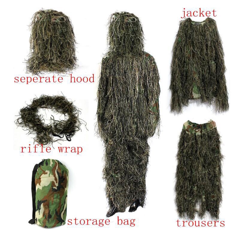 Ghillie Suit Camo Woodland Camouflage Forest Hunting Undercover Woodland Geely Suit Aerial Shooting Sniper Green Suit Adult Camouflage Army Jungle Multicam Costume
