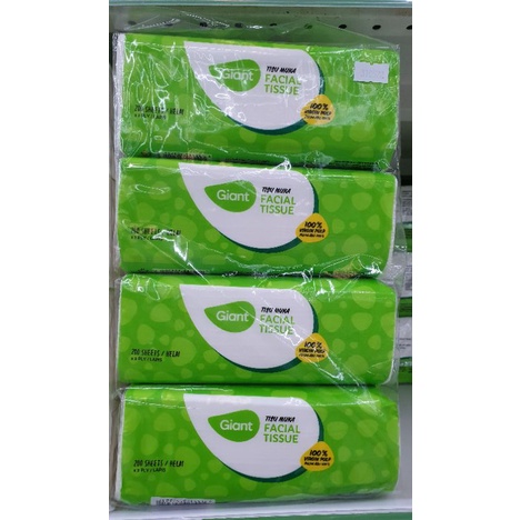 Giant Brand Facial Tissue 4 x 200 Sheets x 2 Plys 100% Virgin Pulp Per Packet