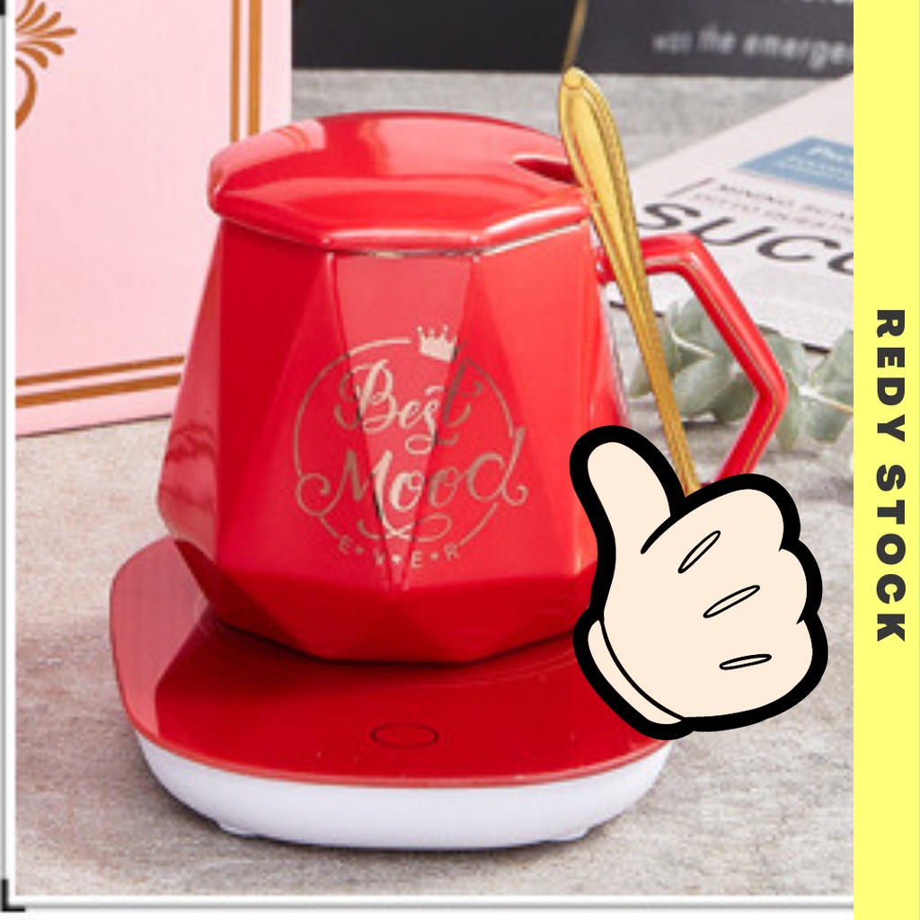 Keep Warm Cup 55° Degree Constant Temperature Mug Smart Warmer Coffee Cup Cawan Panas Heating Coaster Glass