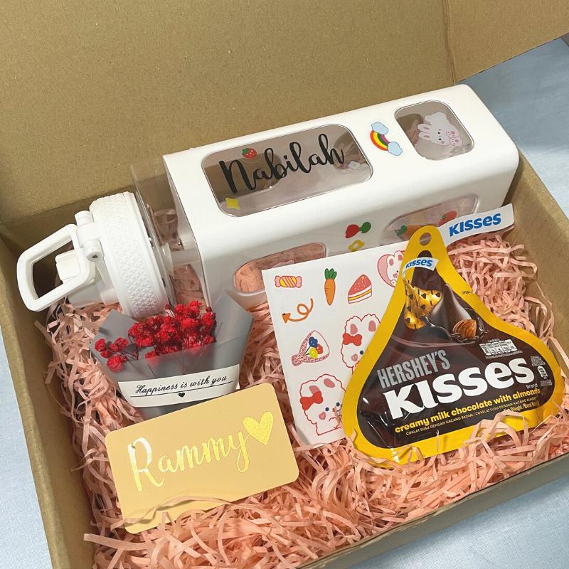 Gift Box Water Bottle 900ml Free Sticker Water Bottle with Straw Botol Air Viral Tik Tok