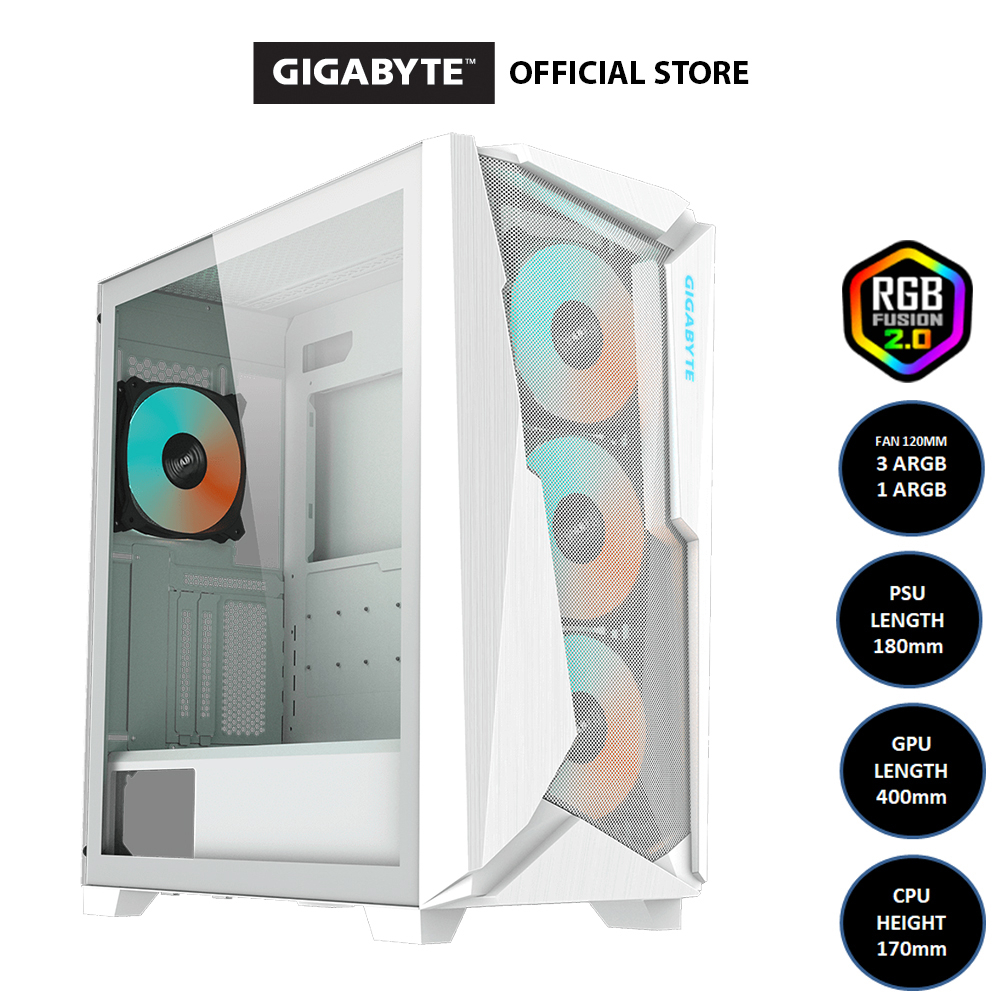 Gigabyte C301 Glass E-ATX Mid Tower PC Case RGB Desktop Casing Tempered Glass Side Panel C301G with 4 ARGB Fans