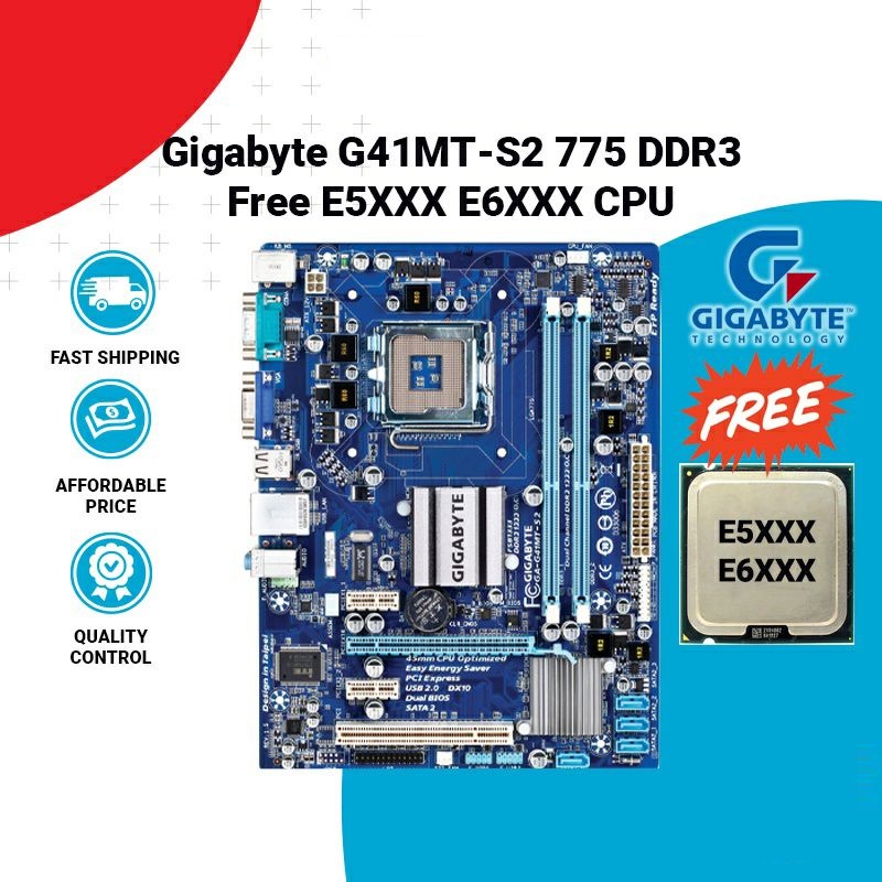 Gigabyte G41 DDR3 P5G41T-M LX G41MT-S2 Socket 775 Intel Motherboard (Free CPU)