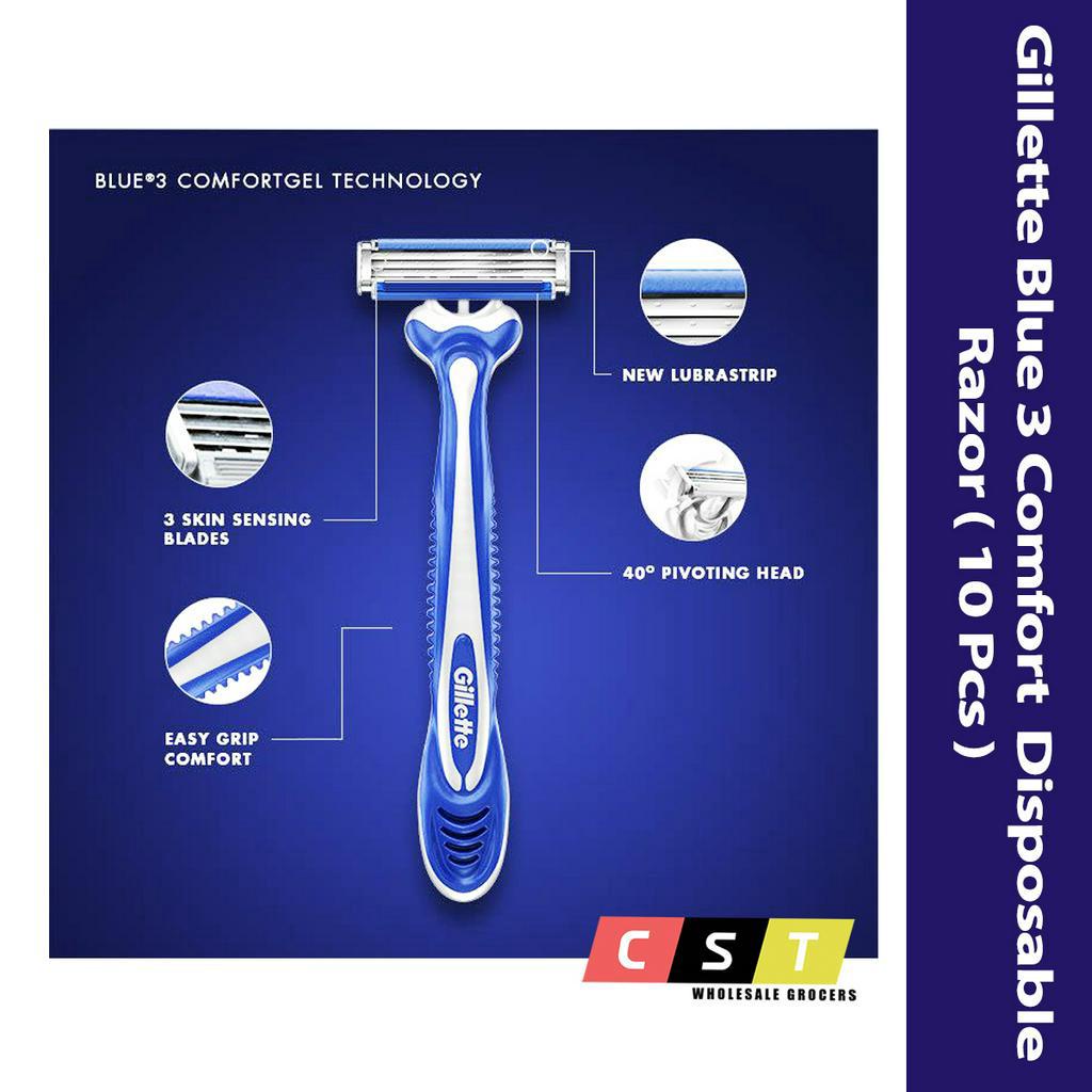 Gillette Blue 3 III Sensitive Skin 3 Blades Disposable Razors (10pcs)
