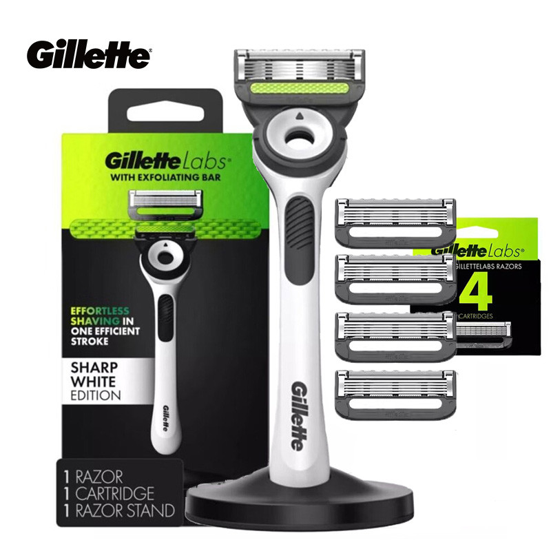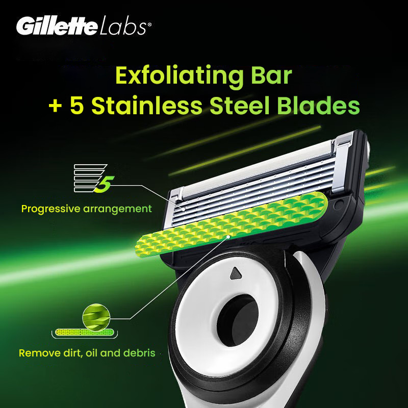 Gillette Labs Razor Flexdisc 5-Layer Blade Sharp Beard Shaving Razor for Men with Exfoliating Bar Razor Stand