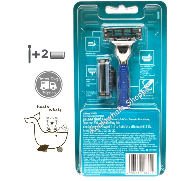 Gillette Mach 3 Mach3 Plus Mach3+ 1 Handle + 2 Cartridges (Original)