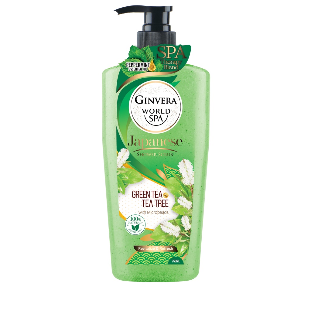 Ginvera World Spa Japanese Shower Scrub - Green Tea & Tea Tree (750ml)